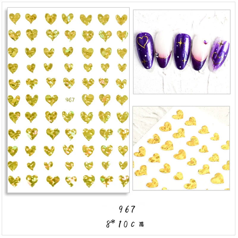Золотистыесеребристые металлические полоски, 3D наклейка для ногтей...