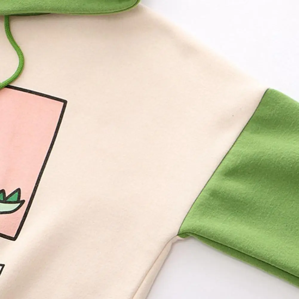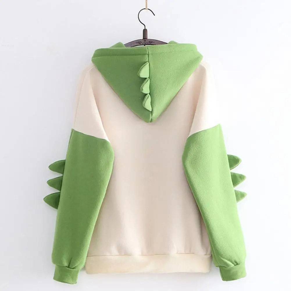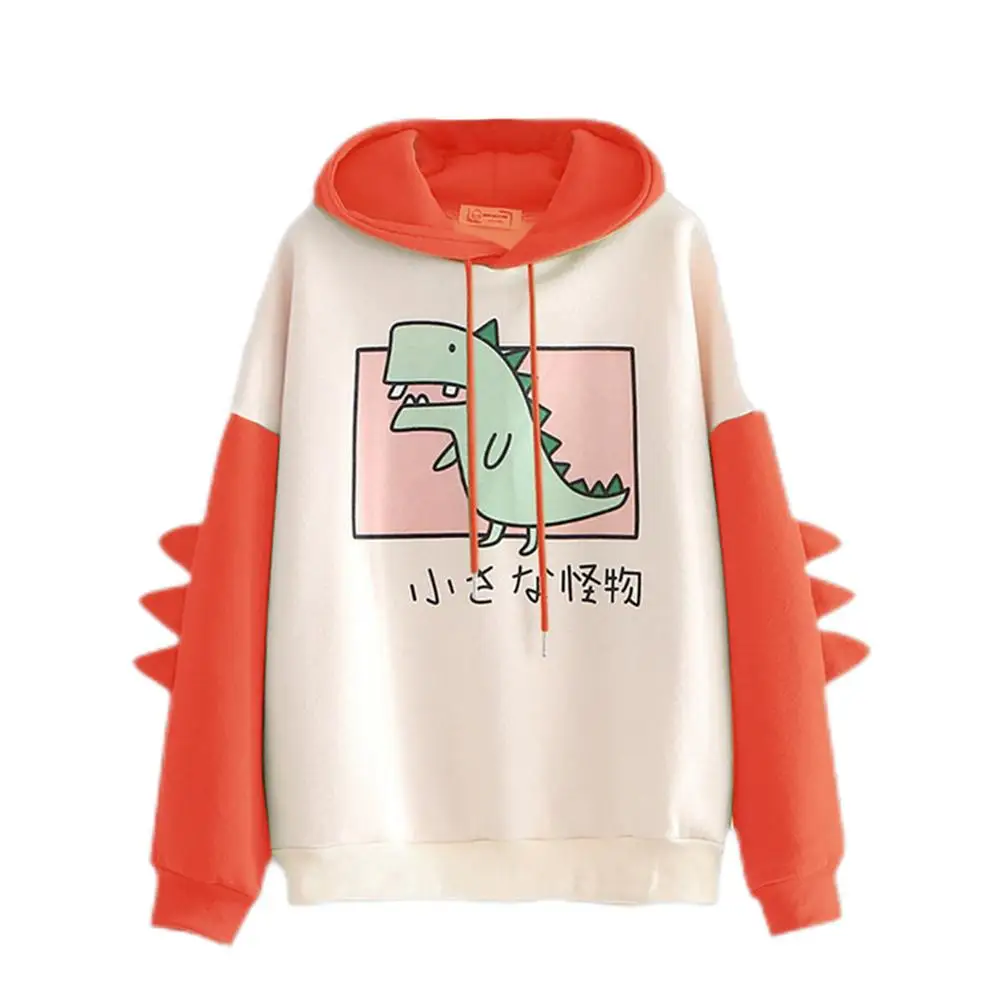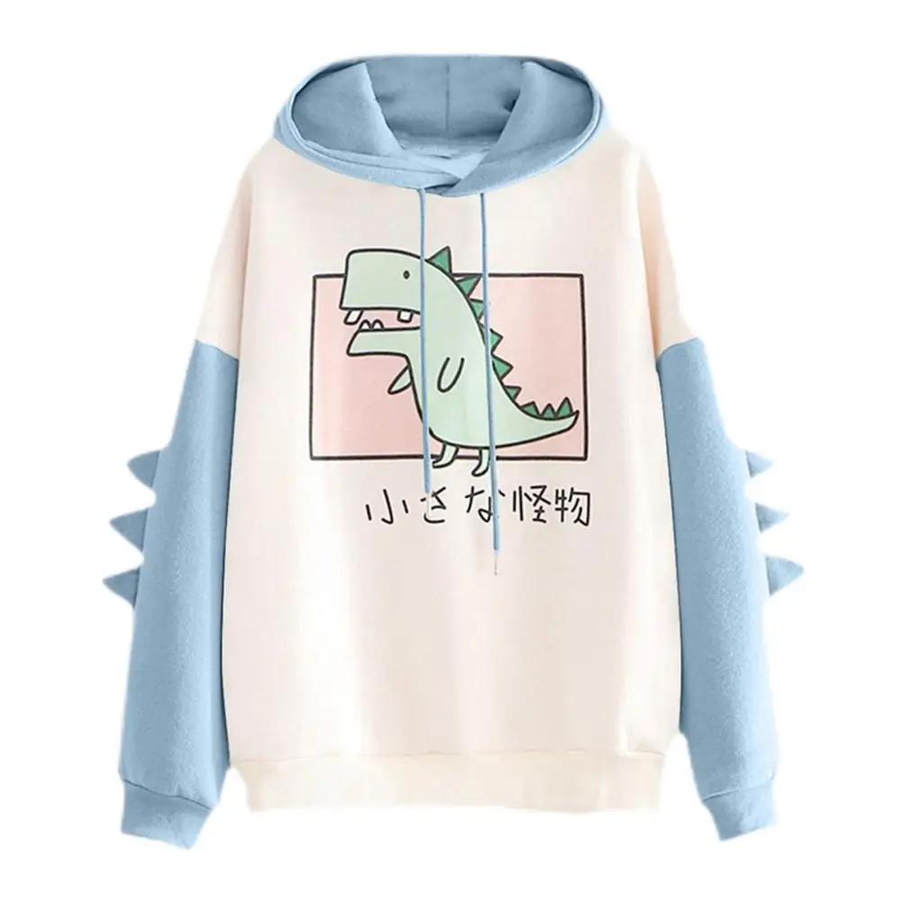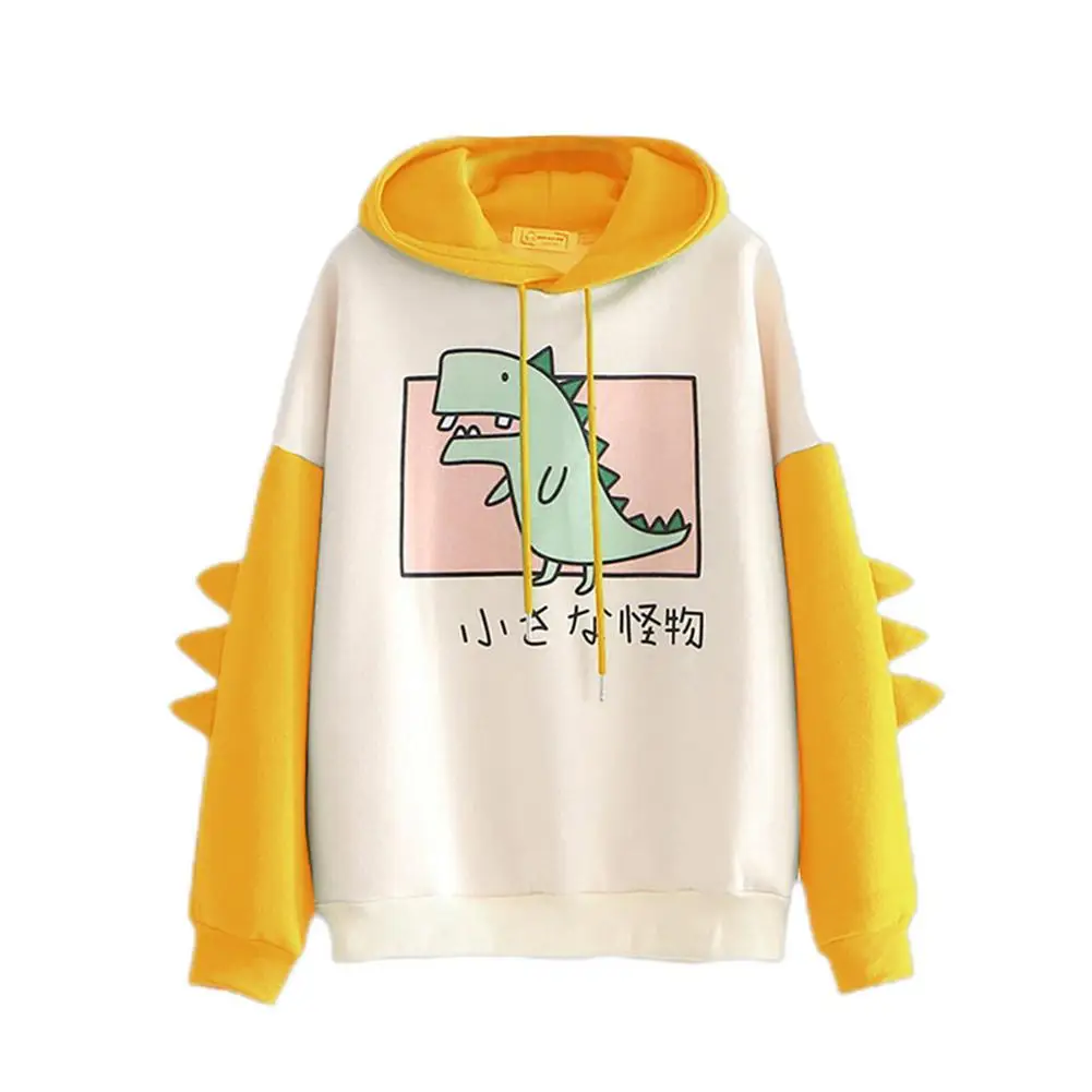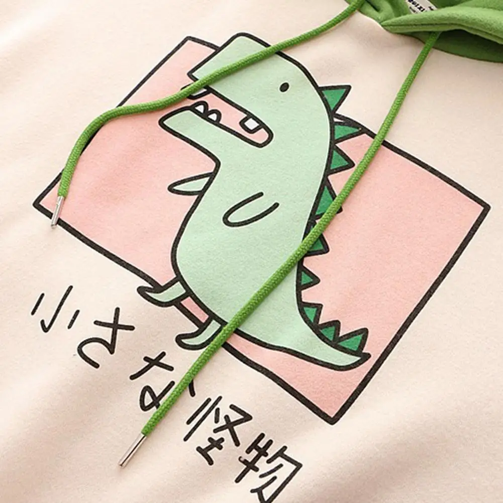 Женский свитшот с капюшоном, милый свитшот с длинным рукавом и мультипликационным принтом динозавра, пальто контрастных цветов, Свитшот Юность