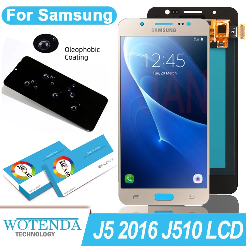 100% Оригинальный Amoled 5,2 ''дисплей для Samsung Galaxy J5 2016 J510 J510F Full LCD сенсорный экран дигитайзер в сборе запасные части