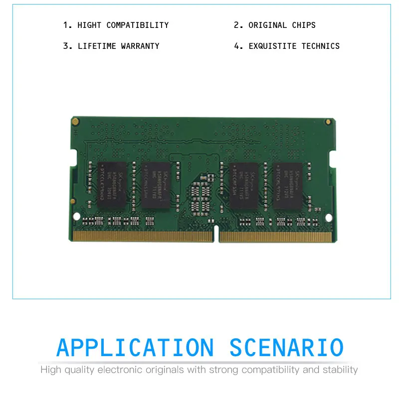 * Подходит для: ноутбука* Тип памяти: DDR4* Объем памяти: 4 ГБ/8 ГБ/16 ГБ* Частота почты: 2400 МГц* Напряжение: 1,2 V* Количество контактов: 260 Pin* Производитель чипов: Samsung, Hynix, Kingston или другие оригинальные чипы.