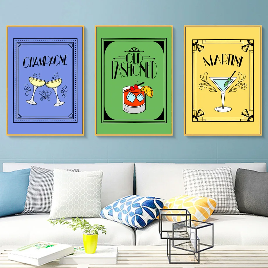 Коктейльные мартини винный бокал Ресторан настенная Картина на холсте скандинавские постеры и принты настенные картины для декора гостиной