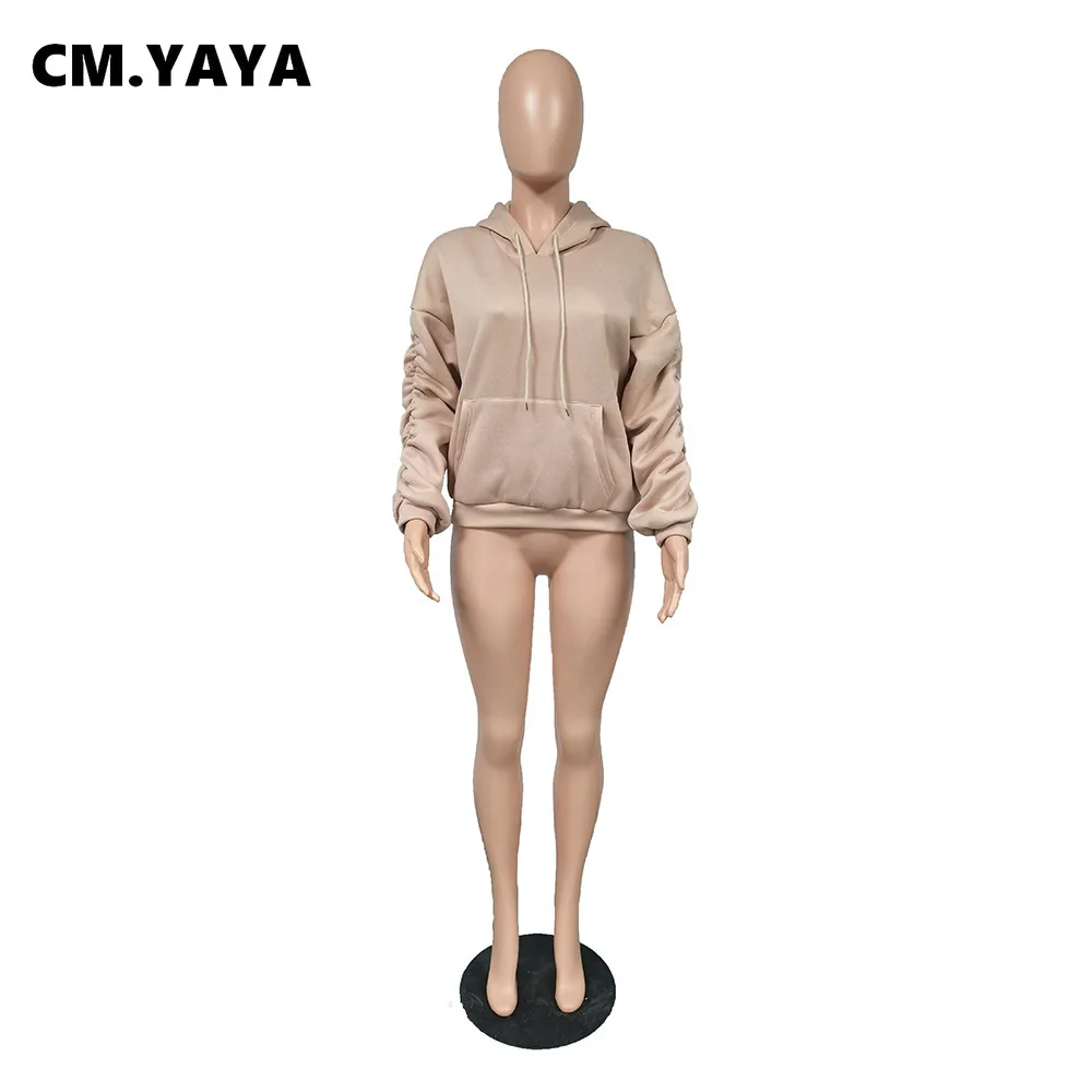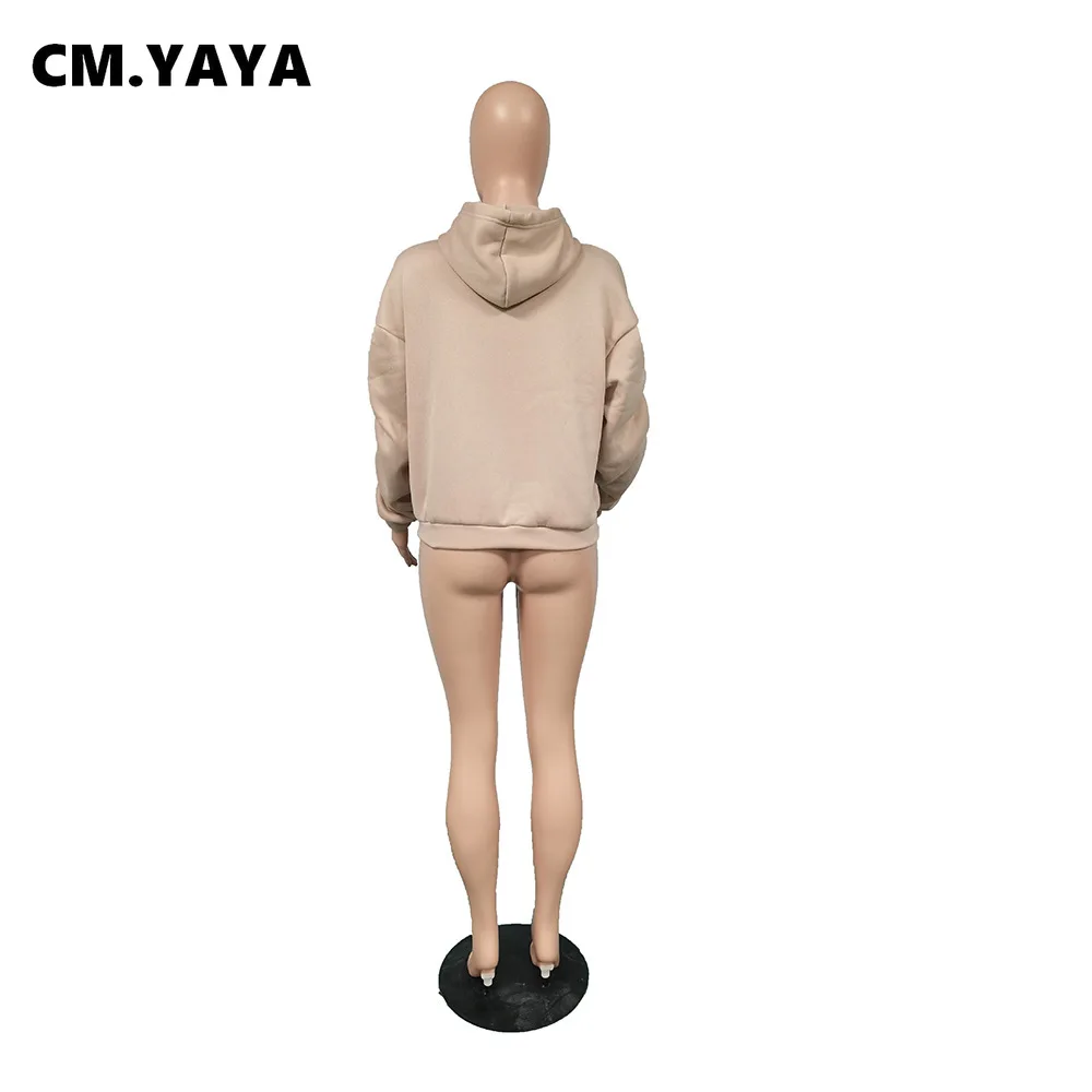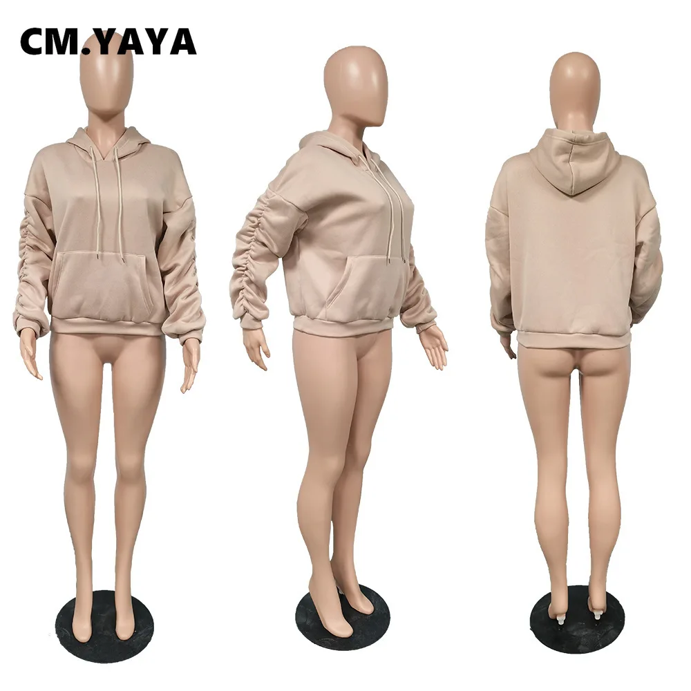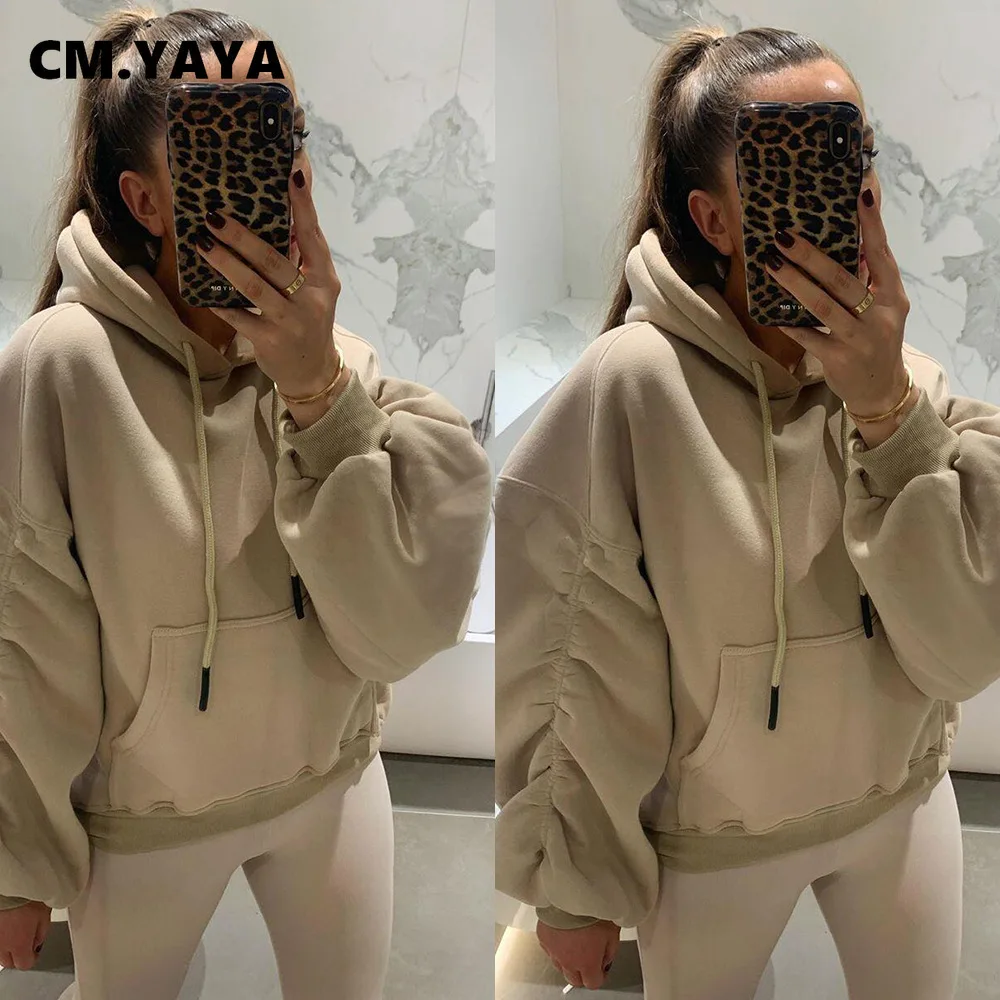 Осенне-зимние женские толстовки CM.YAYA с начесом, однотонные Повседневные пуловеры с длинным рукавом, Женские флисовые толстовки
