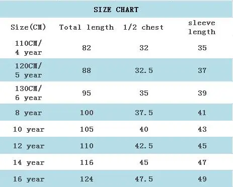 Поскольку тело каждого ребенка отличается, Таблица Размеров товара приведена только для справки.
