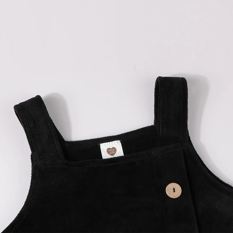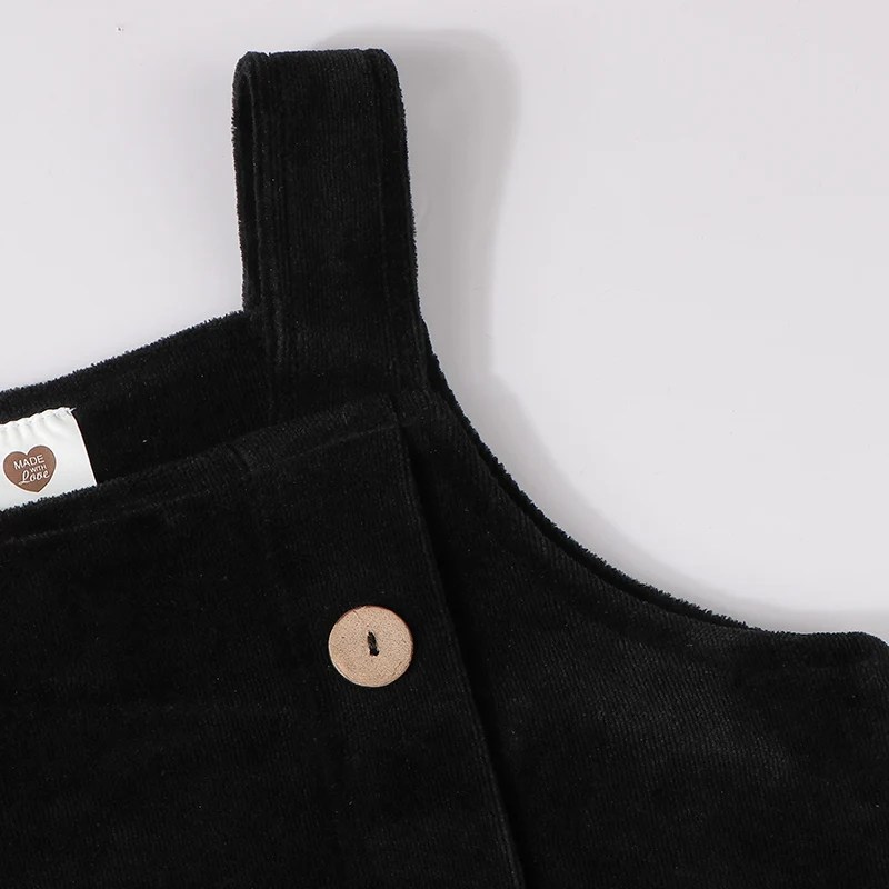 Новинка; Платье на бретелях для девочек; Детская одежда; Черные велюровые платья для девочек; Сезон осень-зима; Одежда для детей; Длинное зимнее платье-комбинация с деревянными пуговицами