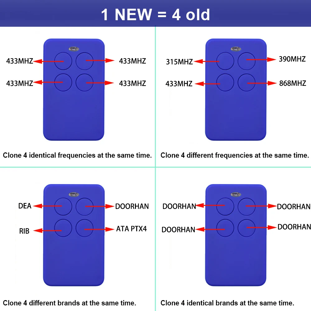 1. Может клонировать больше брендов (Обновлено еще 20 брендов) 2. Увеличенное расстояние копирования (старое: 4-5 см, макс.: 50-60 см, легче Копировать Пульт с более слабым сигналом) 3. Большее расстояние управления 4. Нет проблем с батареей