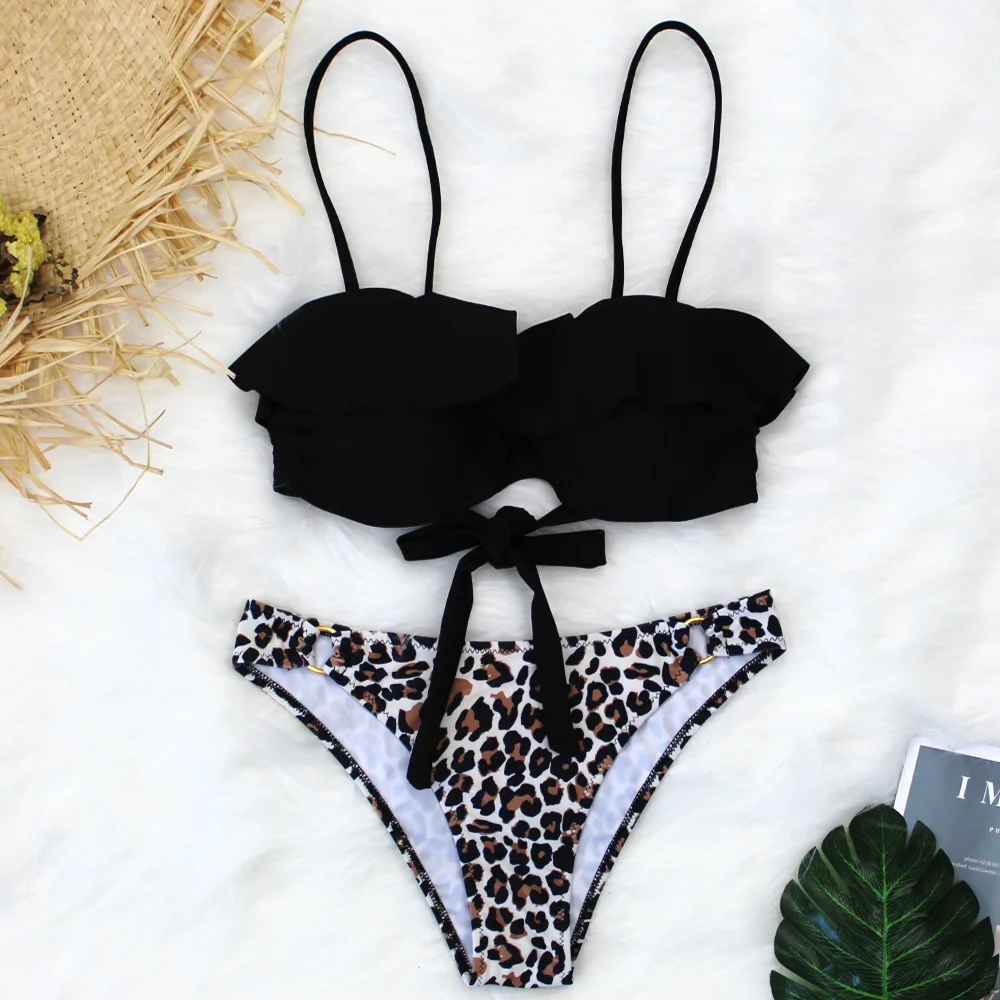 Женский купальник с леопардовым принтом, купальный костюм из двух п...