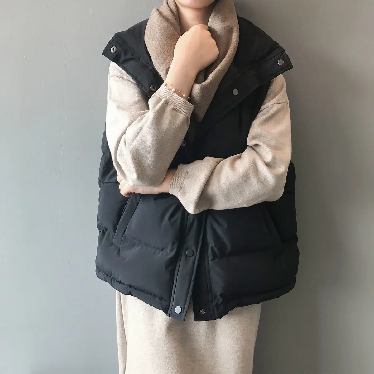 Осенне-зимний женский однотонный Свободный жилет с воротником-стойк...
