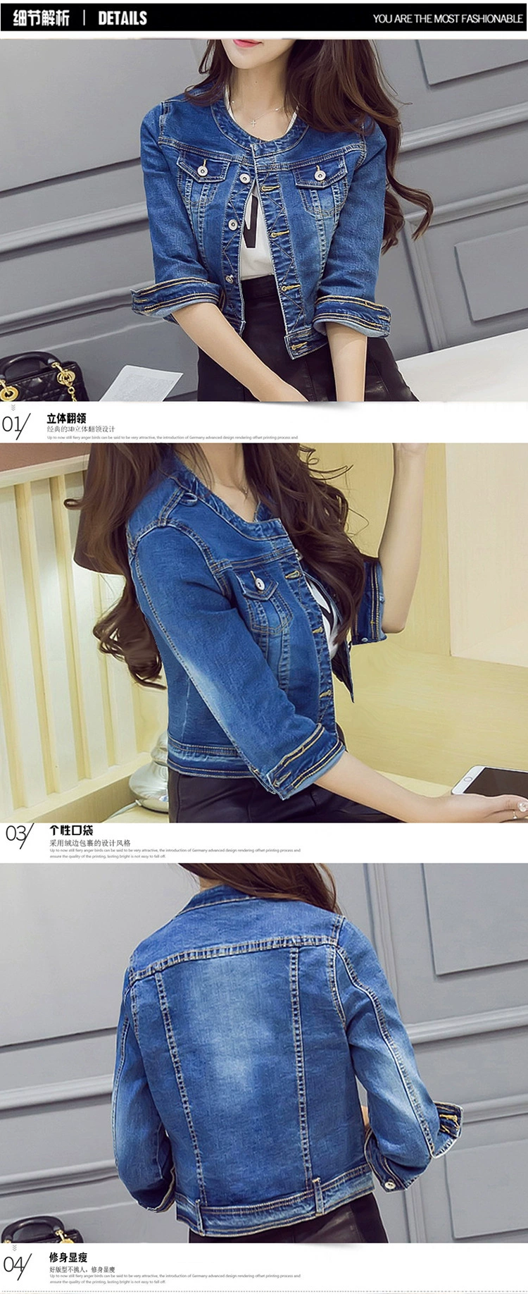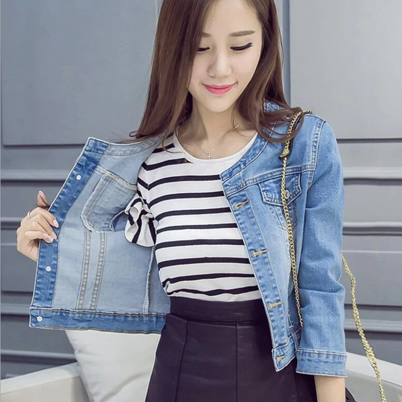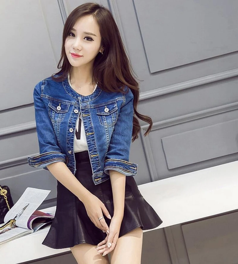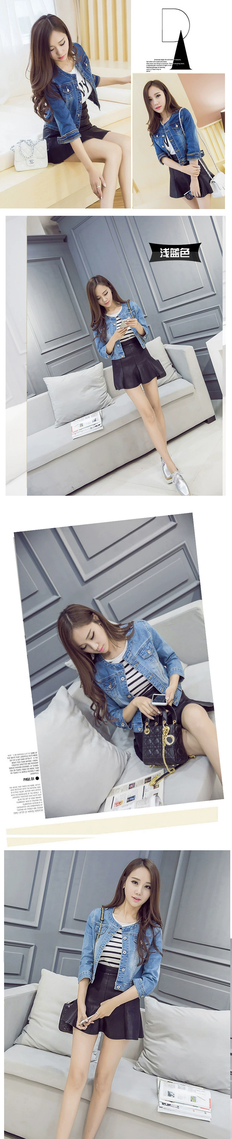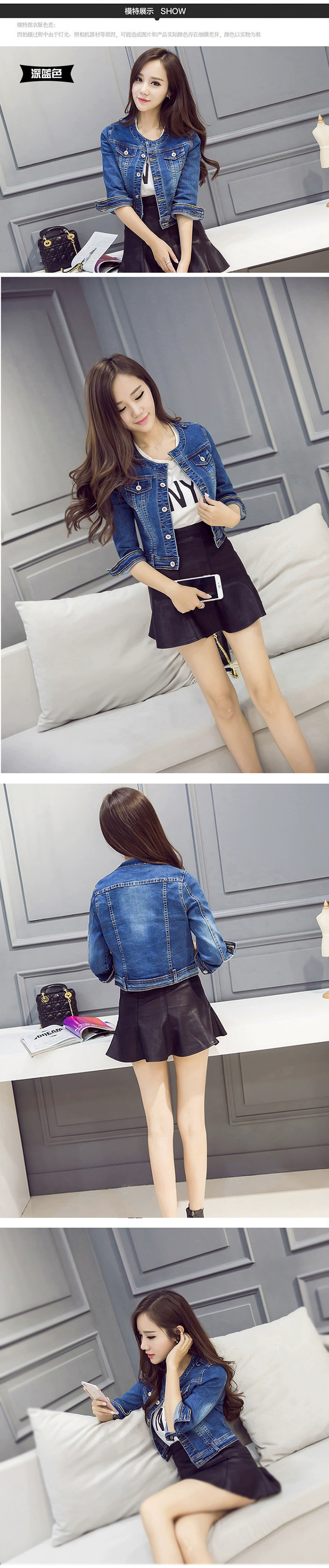 Осенние женские джинсовые куртки с круглым вырезом Базовая укороченная джинсовая куртка Модные джинсы с длинным рукавом синяя куртка-бомбер короткая джинсовая куртка топы