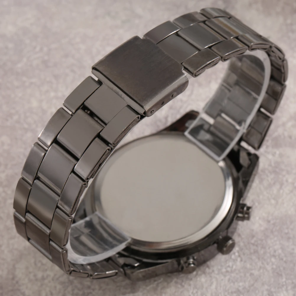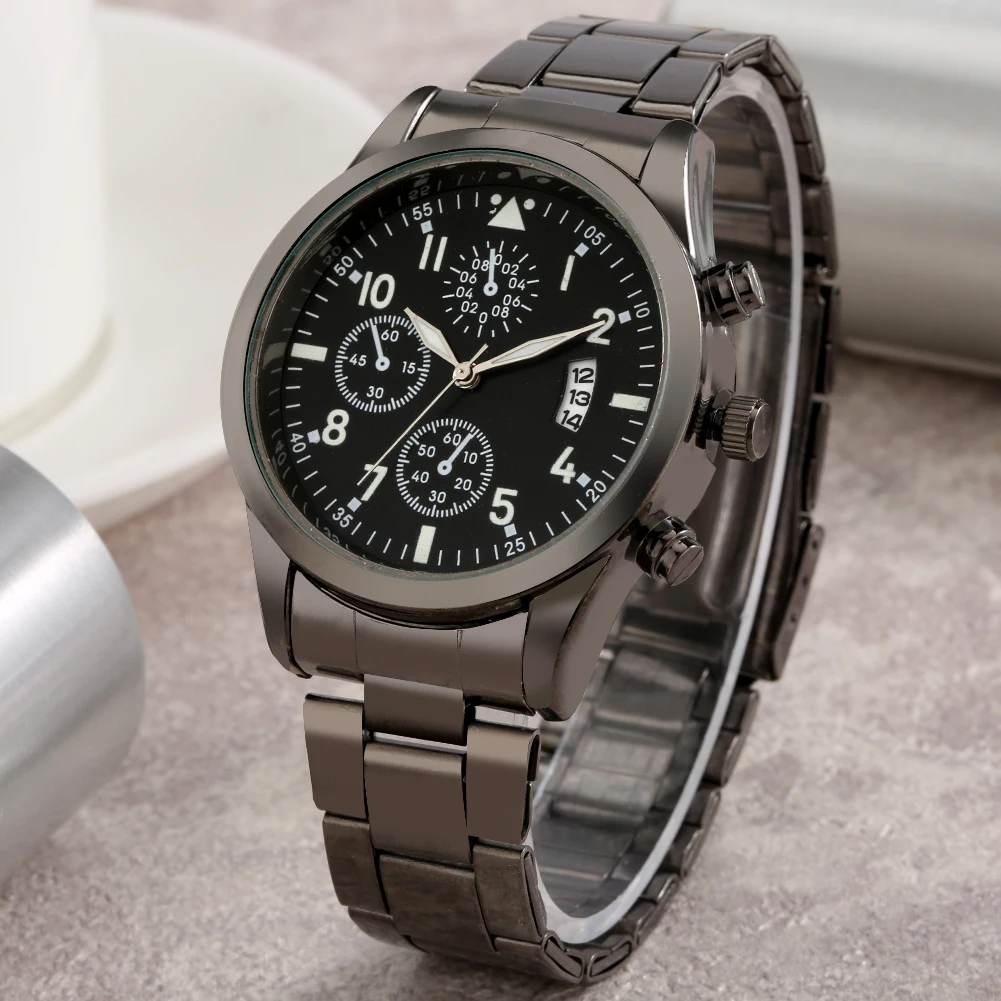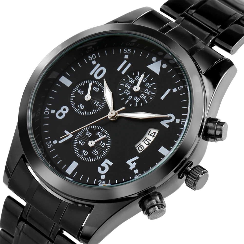 Мужские часы с календарем, Подарочная коробка, черный кварцевый Циферблат, ремешок из нержавеющей стали, безопасный складной застежка, мужские браслеты, подарочный набор для мужа