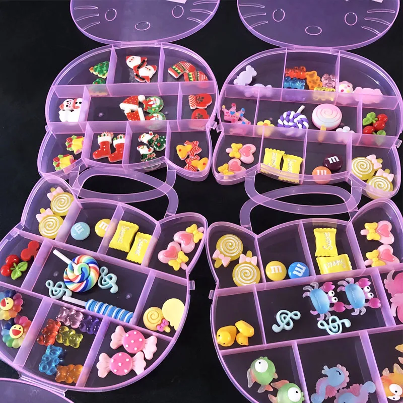 3D Kawaii милый кот коробка для ногтей талисманы набор конфет Декор Аксессуары Сумасшедший Summber ногтей талисманы Стразы Модный маникюр BW35-346