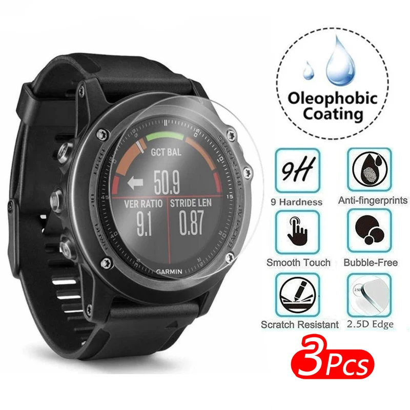 High Screen Sensitivity And Comfortable Touch Feeling.Screen Guard Can Resist Scratches And Damages From Unwanted Scratches.Anti Oil / Water Coating, Avoid Smudges And Reduce Fingerprints.Easy to install, Self-adhering, Leaves no sticky residue after removed.Color: TransparentMaterial: Tempered GlassCompatible With: For Garmin Watch Quantity: 3 Pcs/PackFeatures:1. Surface HardnessThe 9H+ hardness can effectively protect your screen from scratches and external shocks.2. Anti-shatter FilmIf broken,the tempered glass breaks into small spiecesthat are not sharp,making it more safer for users.3. Oleophobic CoatingThe oleophobic coating can prevent fingerprints or other stains,and make the film easy to clean.4. Delicate TouchThe Self-adhesive silicone can touch on the screen smoothly.It makes the installation easy and is more sensitive for operation. Install guide:Before beginning, make sure to wash your hands thoroughly and wipe your screen with the alcohol pad.Peel the protective layer off the adhesive side.Carefully align the tempered glass film and the cutouts to the screen and slow begin the application process.If air bubble get trapped under the tempered glass film,use the cleaning cloth to remove them, beginning from the center.Smaller bubble should disappear within 1-2 days. Package:3 x Tempered Glass Screen Protectors3 x Wipes3 x Dust removal stickerNote:Please allow errors of the color from different monitors and the measure by hands.Note: This is just a watch film, not a watch.