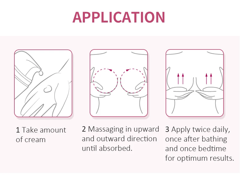Подходит для:Для провисания, сморщенной груди и бедер, обильной хирургии грудного бедра не удалось, стремление к совершенству толпы тела.Особенности:Помогает укрепить и улучшить грудь и ягодицы с эксклюзивным комплексом активных и натуральных ингредиентов.Его подъемное действие может мгновенно затянуть ткань груди и бедер, помогает эффективно бороться с гравитацией, обеспечивает эластичность и поддержку.Применение:1. Возьмите количество крема2. Массирование вверх и наружу до впитывания.3. Наносите два раза в день, один раз после купания и один раз перед сном для достижения оптимальных результатов.