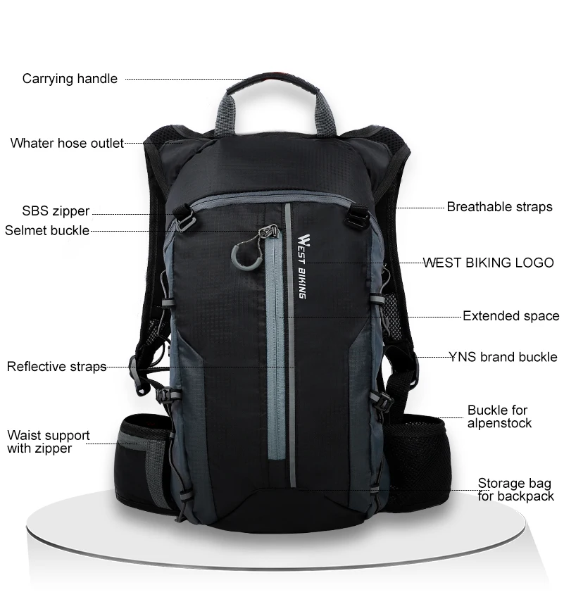 WEST BIKING Водонепроницаемая велосипедная сумка для занятий спортом на открытом воздухе, портативный велосипедный рюкзак с гидратацией, дорожный рюкзак для пешего туризма, альпинизма, горного велосипеда, велосипедный рюкзак