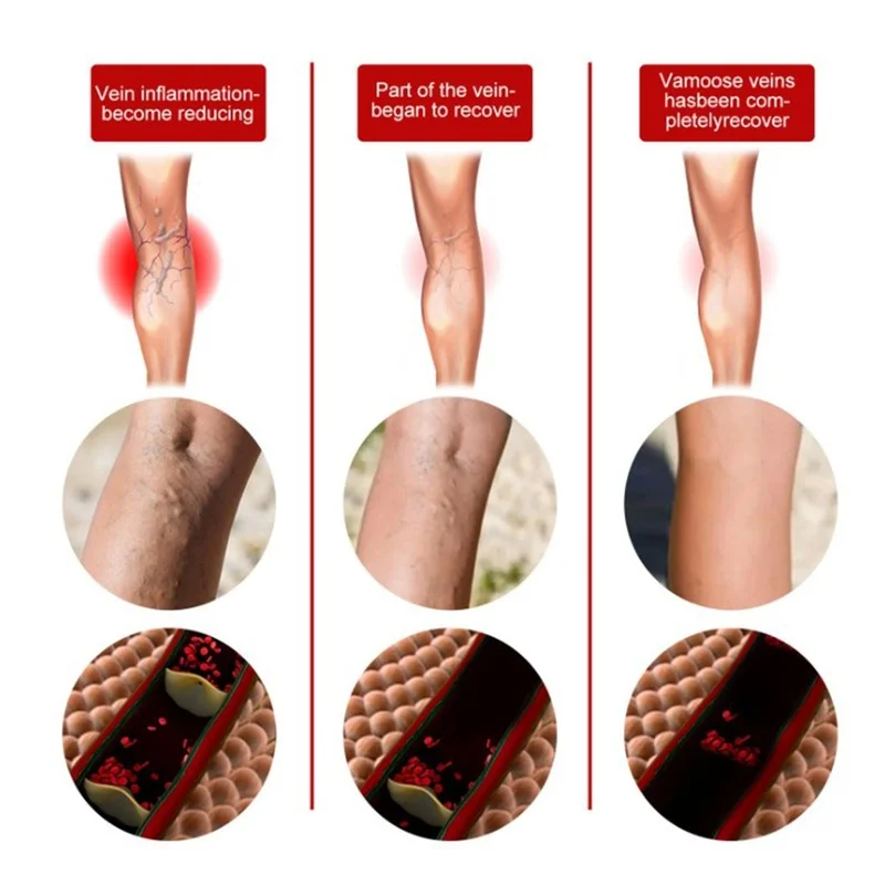Вены постепенно становятся гладкими, ускоряют кровообращение, очевидно улучшается варикозное расширение вен, вязкость крови, агрегация тромбоцитов значительно снизилась. Язвенная часть постепенно заживляется. Новая мышца будет расти; Шаг 4 (около 90 дней):
