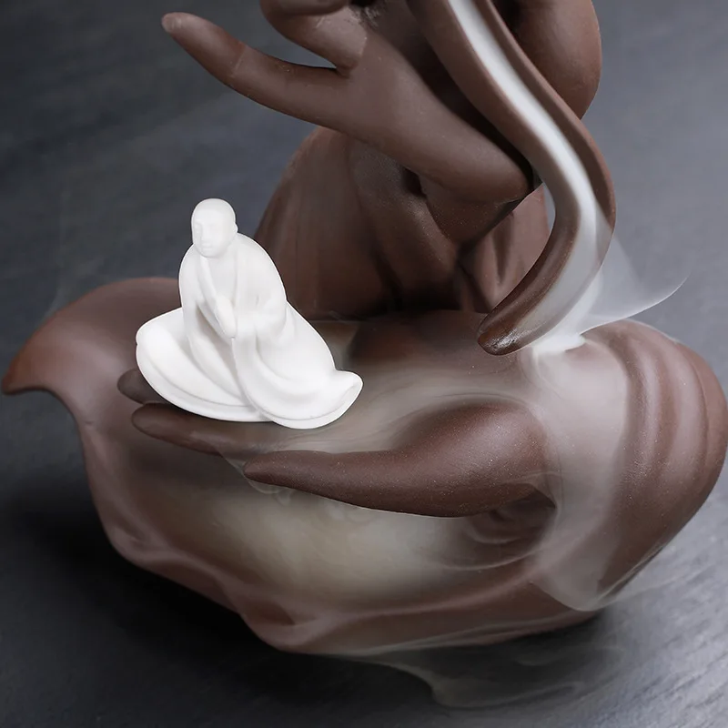 Дымовая горелка для благовоний с водопадом, креативный держатель для благовоний Будды, портативная керамическая подставка для лотоса ручной работы