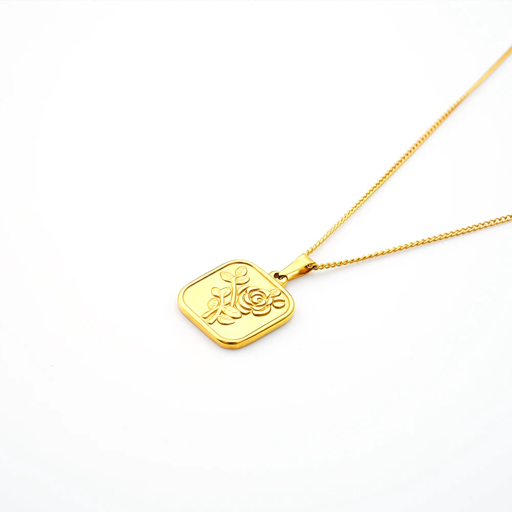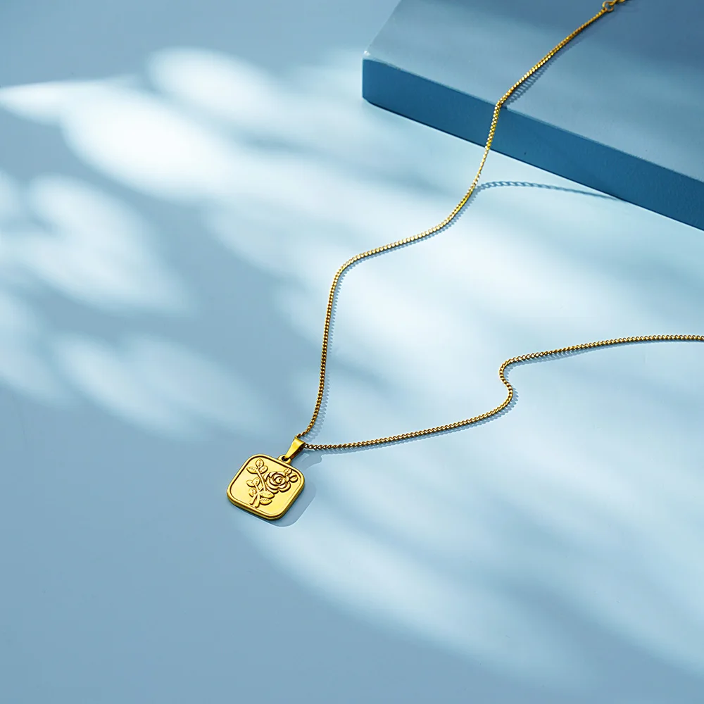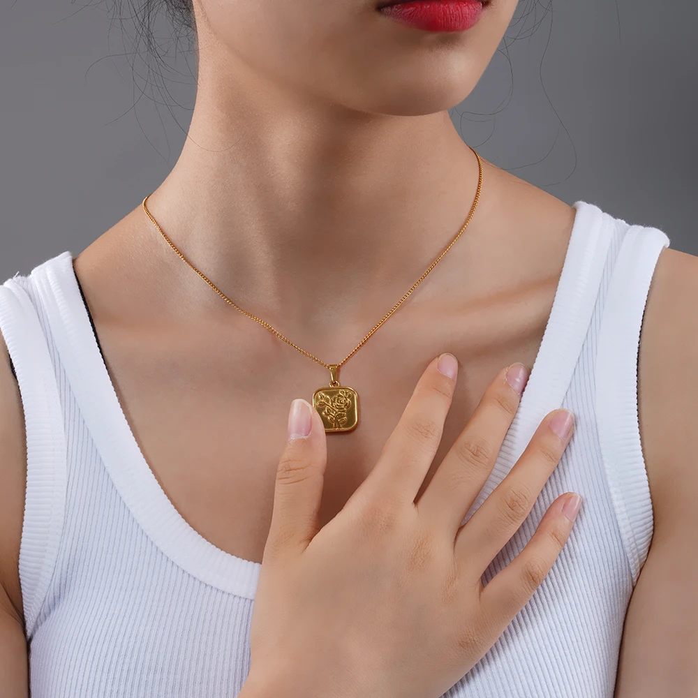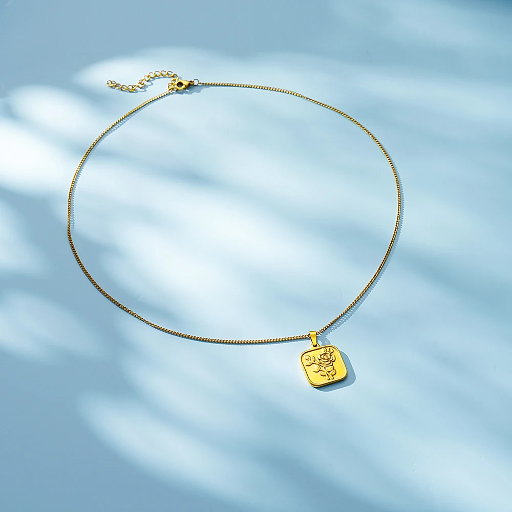 Женское Ожерелье из нержавеющей стали 100% с геометрическим рисунком, золотистое металлическое ожерелье-медальон с розовым цветком из титаниума 18k, чокер, клетка