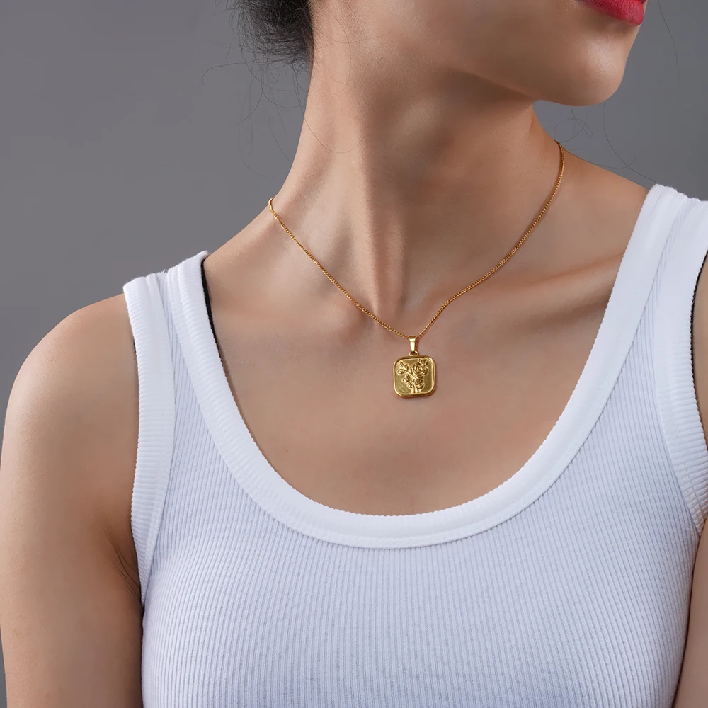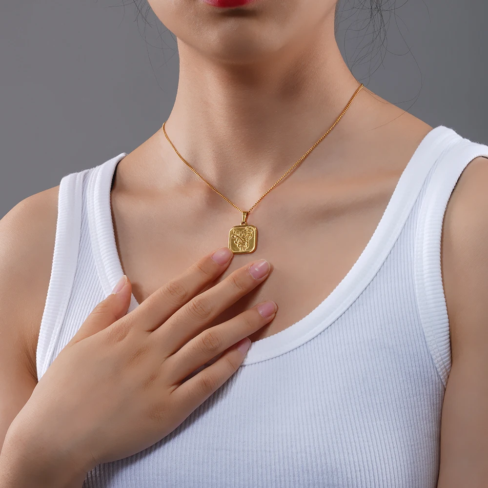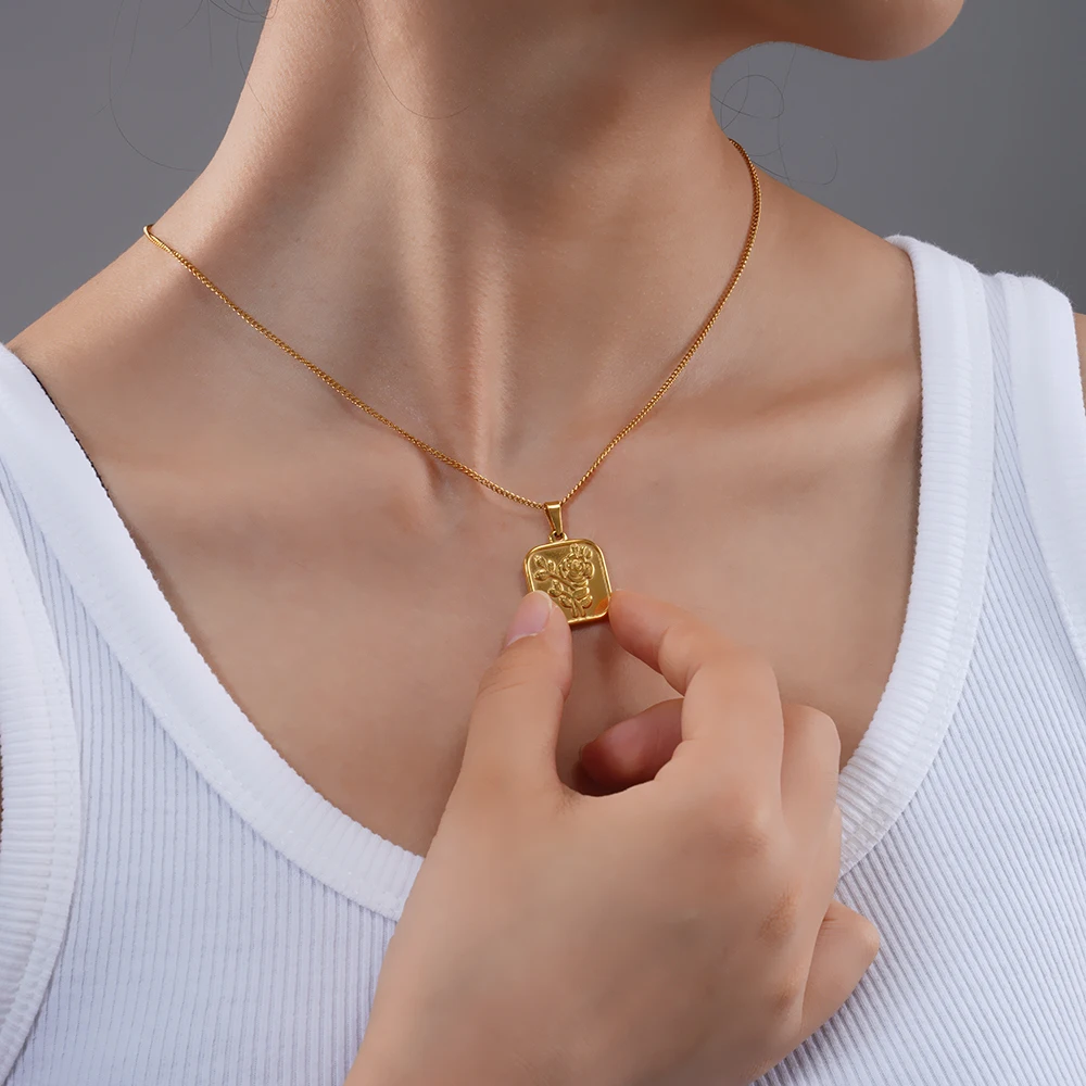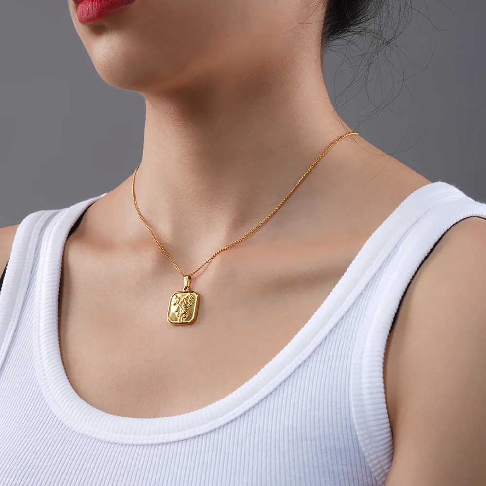 Женское Ожерелье из нержавеющей стали 100% с геометрическим рисунком, золотистое металлическое ожерелье-медальон с розовым цветком из титаниума 18k, чокер, клетка