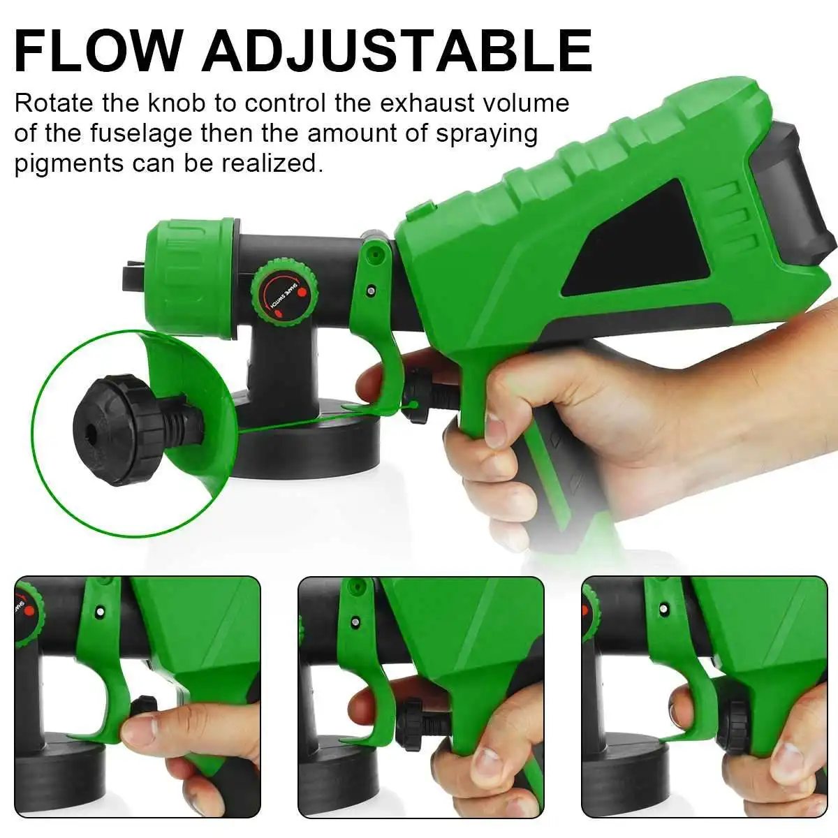 Особенности:-Быстрое охлаждение воздухозаборника и отвода тепла, чтобы облегчить рассеивание тепла и обеспечить срок службы машины-Однокнопочный переключатель, более безопасный и удобный источник питания, эргономичный дизайн-Ручка регулировки может более эффективно регулировать расход сопла, регулировать в соответствии с вашими потребностями и экономить материалы-Три режима распыления: круглый, вертикальный и горизонтальный. Вы можете выбрать рисунок, чтобы распределить краску желаемым способом-Широкий спектр применения, подходит для окраски дверей, окон, стен, заборов, пола, потолков, полов, шкафов, бытовой мебели и других предметов.