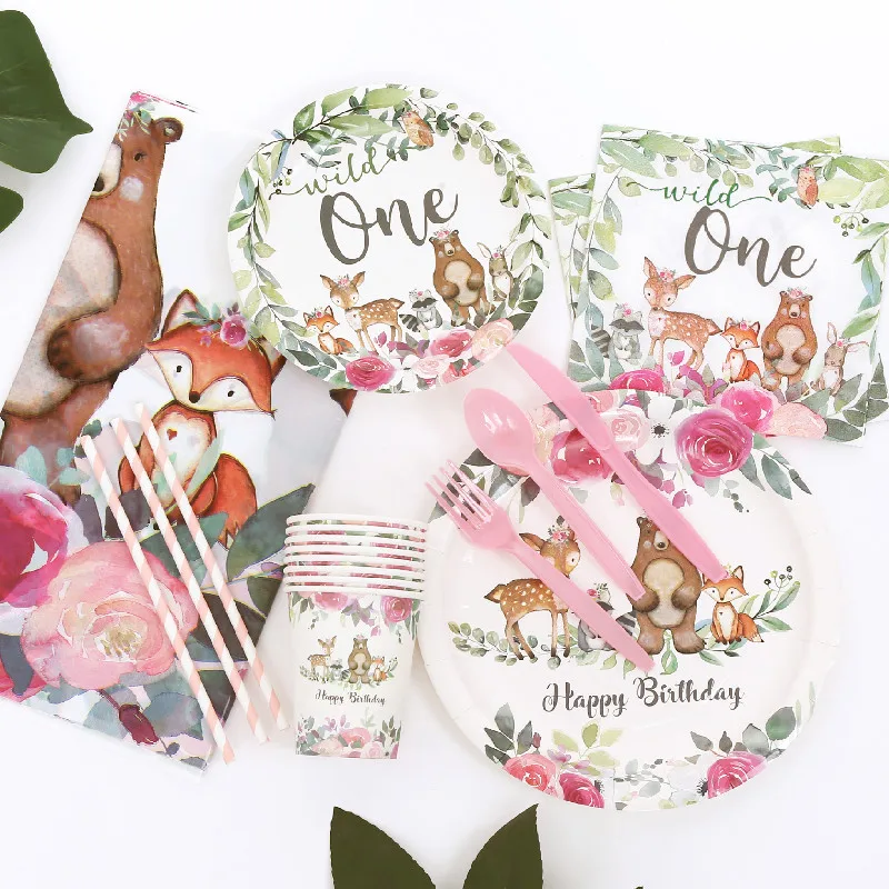 Детские серии для душа вечерние одноразовые столовые приборы набор розовые бумажные тарелки салфетки под чашки для маленьких девочек вечерние украшения на день рождения
