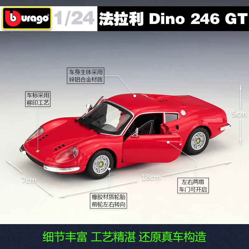 Модель автомобиля Bburago, модель автомобиля из сплава, Феррари Дино 246 GT в масштабе 1:24