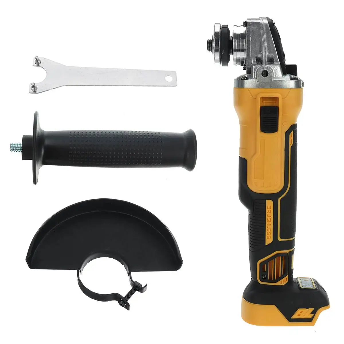 Характеристики: Название Электрическая угловая шлифовальная машина Двигатель Бесщеточный двигатель Цвет Синий, желтый Диаметр шпинделя 10 мм Диаметр шлифовального круга. 100 мм/125 мм Мощность 800 Вт Батарея Подходит для аккумулятора Makita 18 в (без аккумулятора) Скорость без нагрузки 11000р/мин Сценарий применения Резка, шлифовка Размер углового шлифовального станка 32x8x1 1 см/12.6x3.1x4.3inПосылка включает в себя: