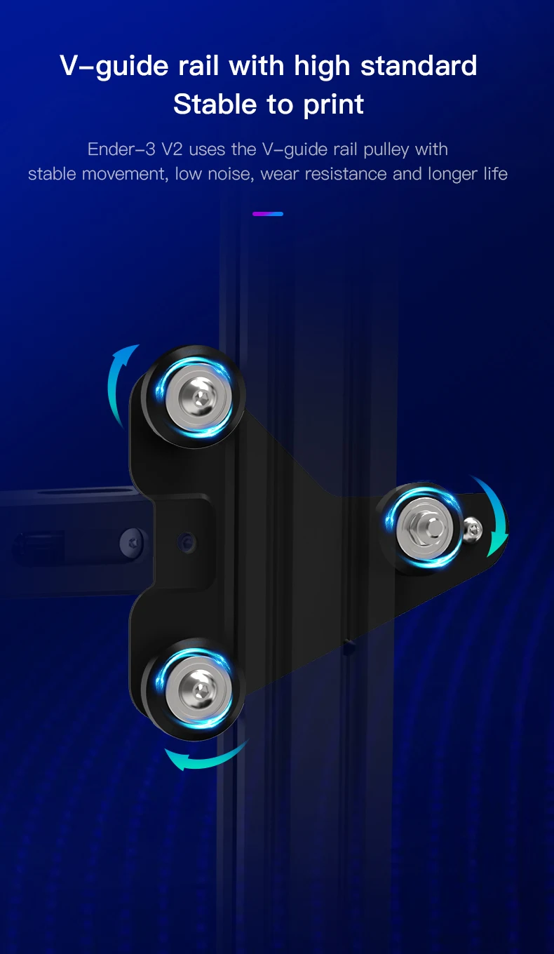 Обновленная материнская плата с бесшумными шаговыми драйверами TMC2208: по сравнению с theEnder 3andEnder 3 pro, v2 дизайн, который обеспечивает пользователям внешний вид и беззвучные обновления (более тихие 3D принтеры).Новый экран с обновленным простым в использовании интерфейсомНовый корпус нагревательного элемента.Умный датчик накаливания и повторная печать.Легкая функция подачи нити.X и Y-Axis натяжение ремня: быстрая и быстрая регулировка. И лучше улучшить точность размеров.Y-Axis - 4040 Экструзия алюминия: ось Y была заменена на 4040 экструзии, так же, как Ender 3 Pro.Это обеспечивает большую стабильность оси Y по сравнению с первоначальным стандартом Creality Ender 3.Насадка и набор инструментов, удобные и аккуратные.
