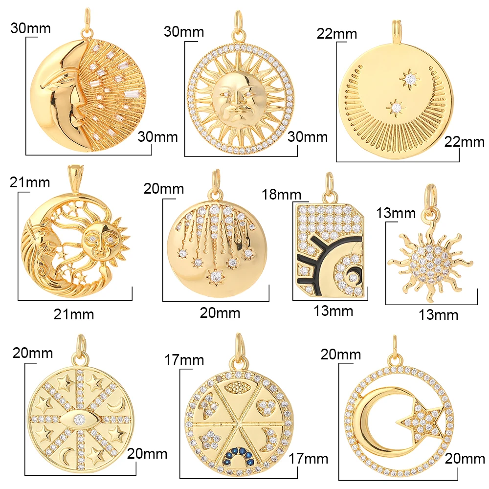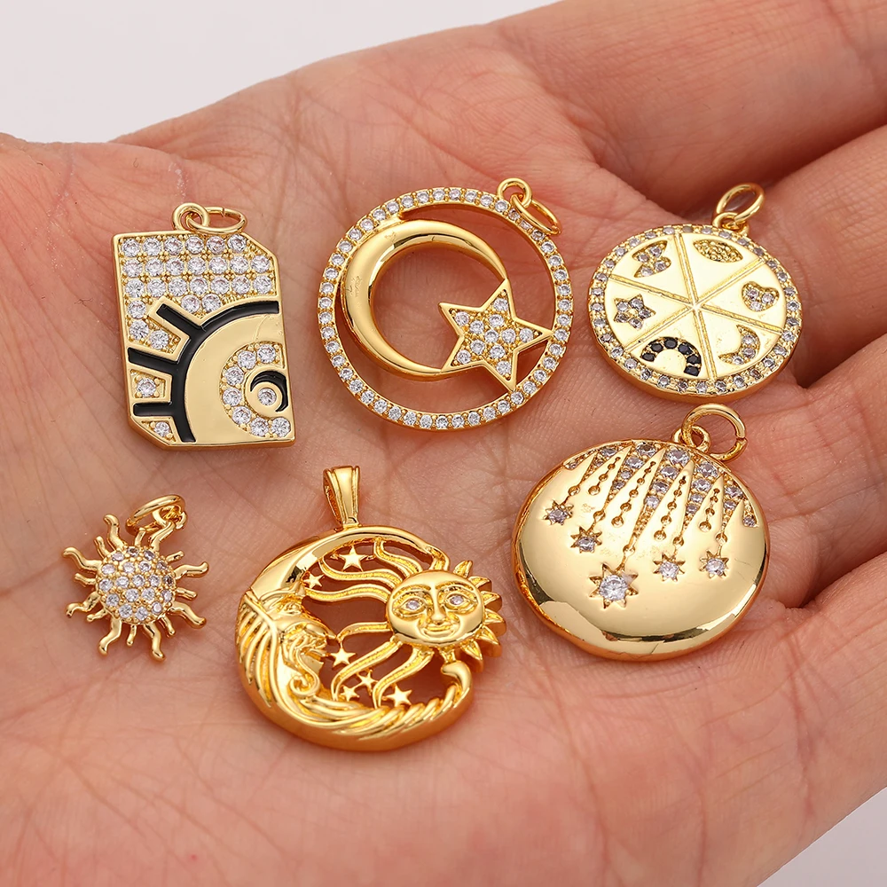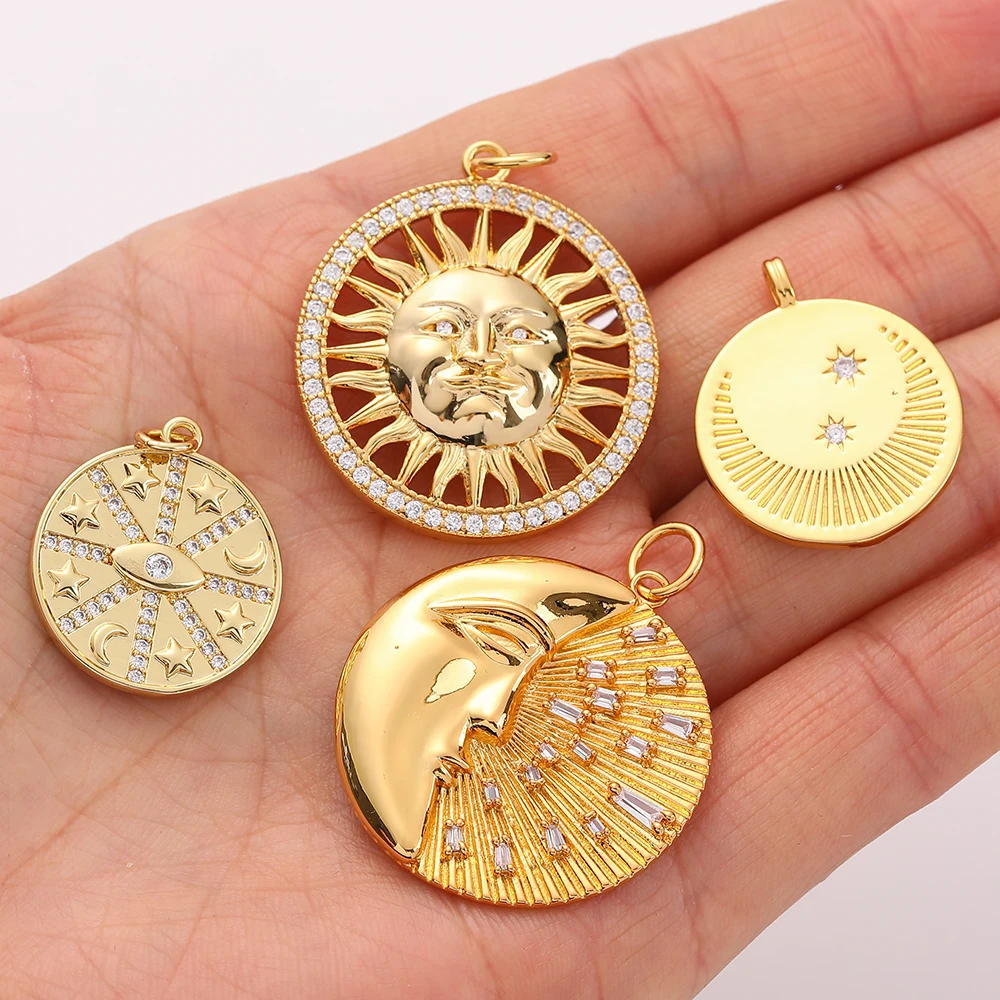 Подвеска сделай сам в виде солнца, звезды, Луны для изготовления ювелирных изделий, ожерелье для женщин, серьги, аксессуары, инкрустированная золотом, меди, цирконием, 2021