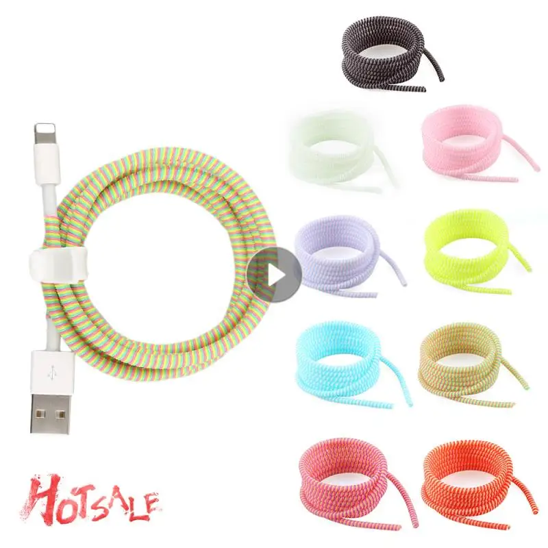 Цветной защитный шнур 1,4 м для телефона противоударный пружинный защитный шнур для зарядного USB-кабеля наушников шпуля для передачи данных