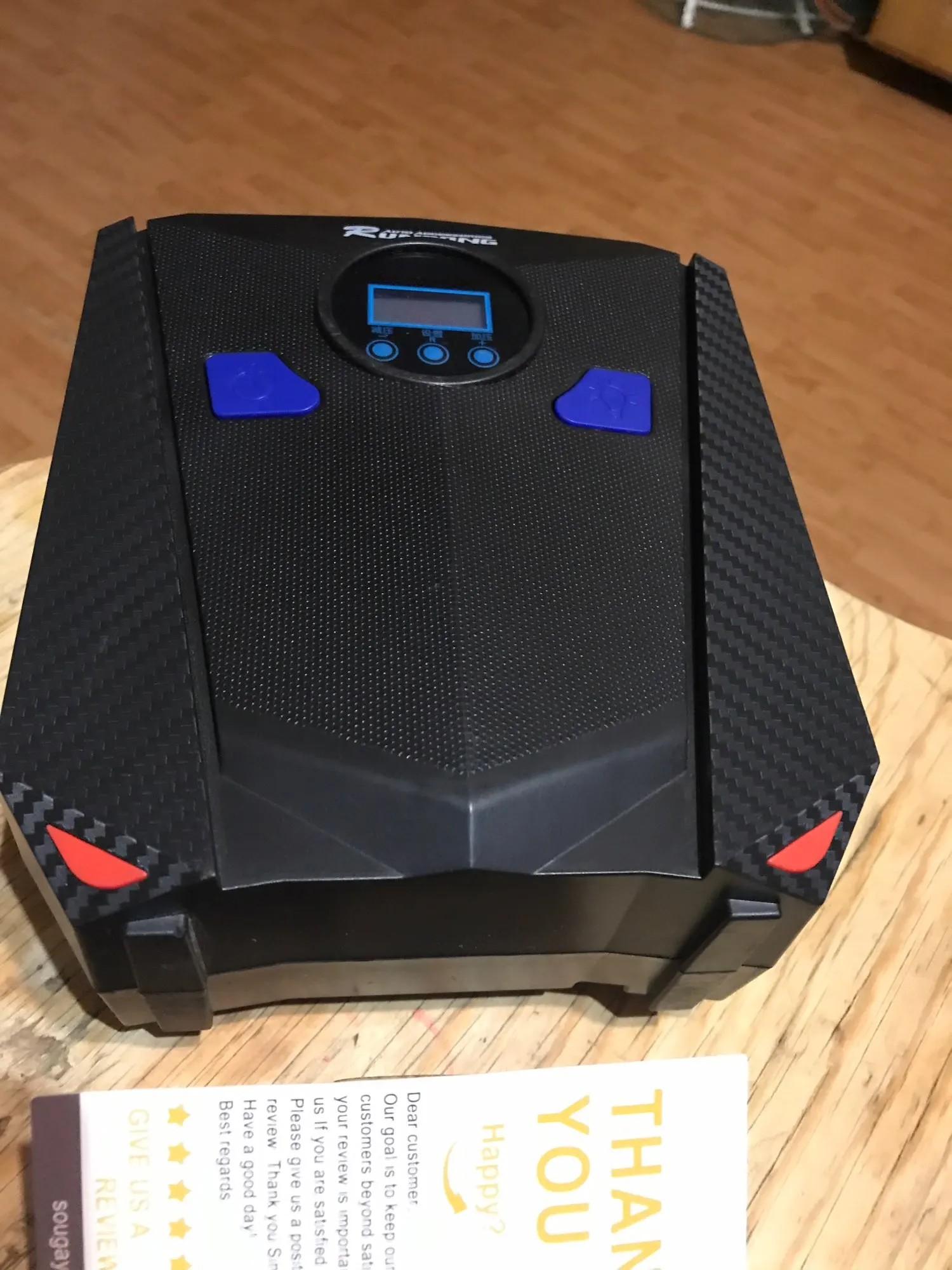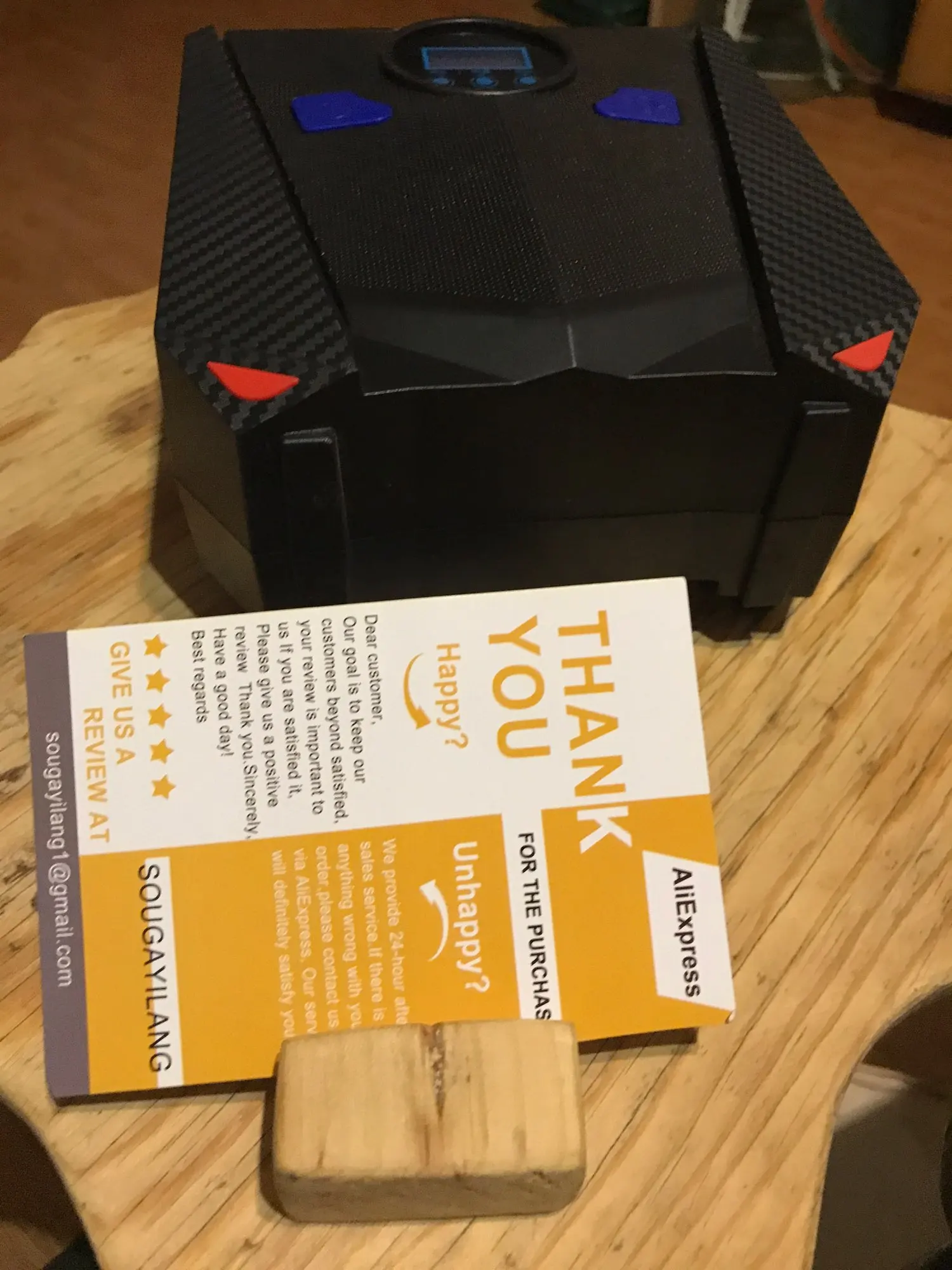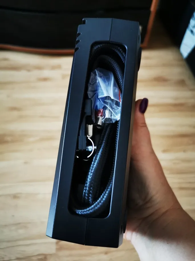 привезли компрессор быстро, курьер до дома довезла. коробочка очень маленькая. сам приборчик лёгкий, компактный. подключили к прикуривателю, работает. насколько хватит, пусть работает. хоть размер его достаточно компактный. можно засчитать в плюс.