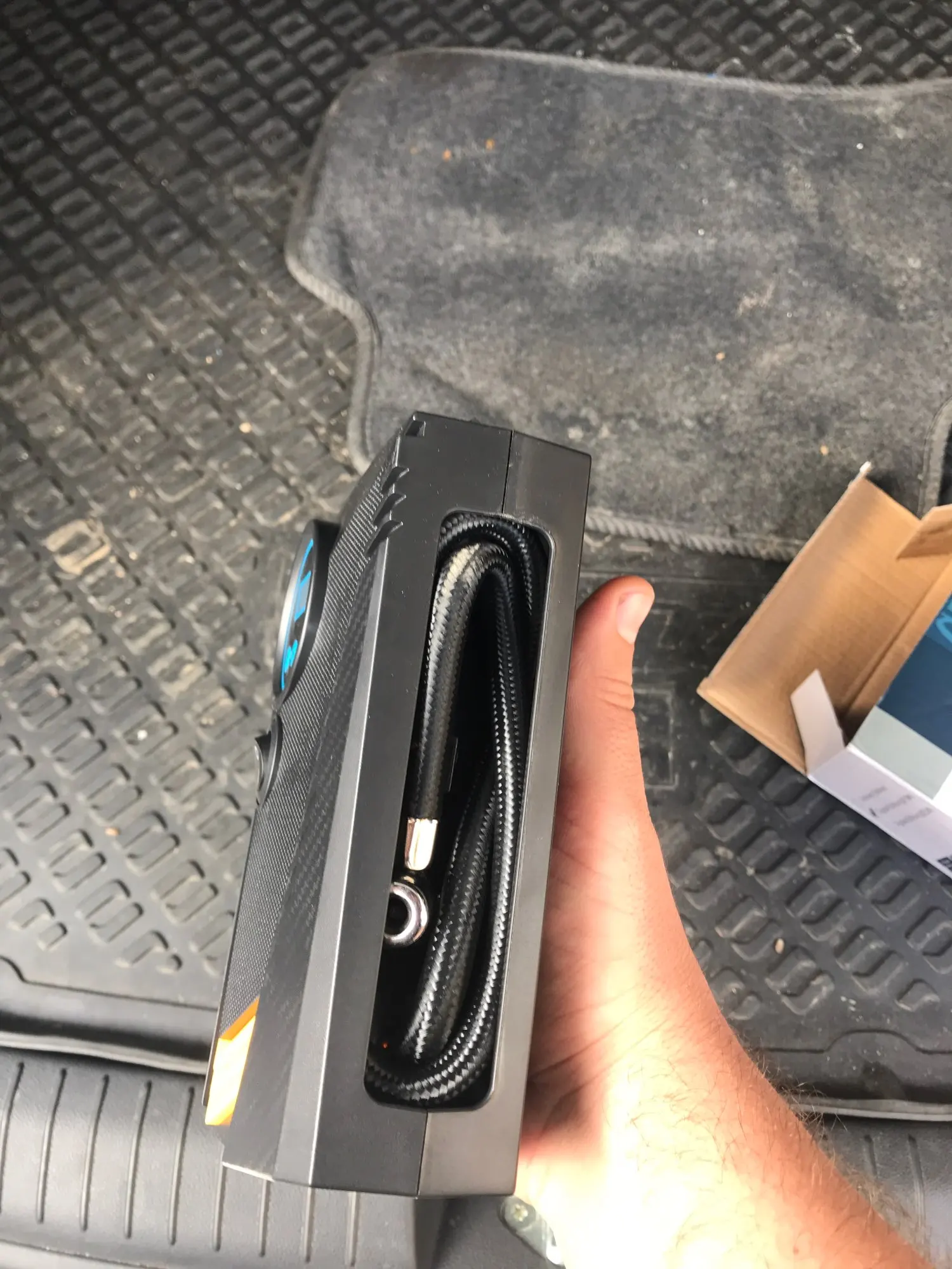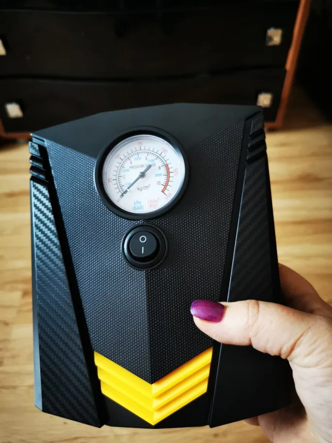 Отлично работает, разница показаний между встроенным измерителем и моим ручным измерителем давления в 0,1 bar, так что советую, качает норм, воздух не травит, длина провода норм, останавливается вовремя.