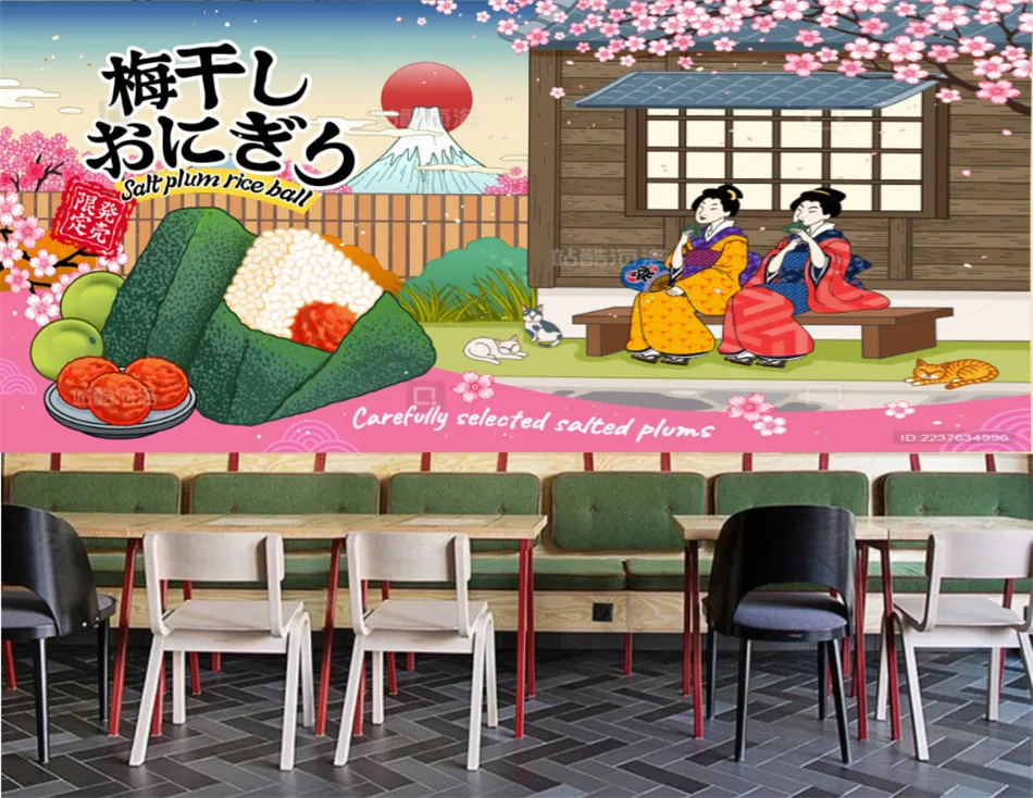 Слива рисовый шар красивые гейши обои 3d японский ресторан фон обои промышленный Декор росписи Papel де Parede Пожалуйста, сообщите нам материалы, которые вам нравятся при размещении заказа, в противном случае мы произвольно выберем материал для производства и доставки. Дисплей продукта: