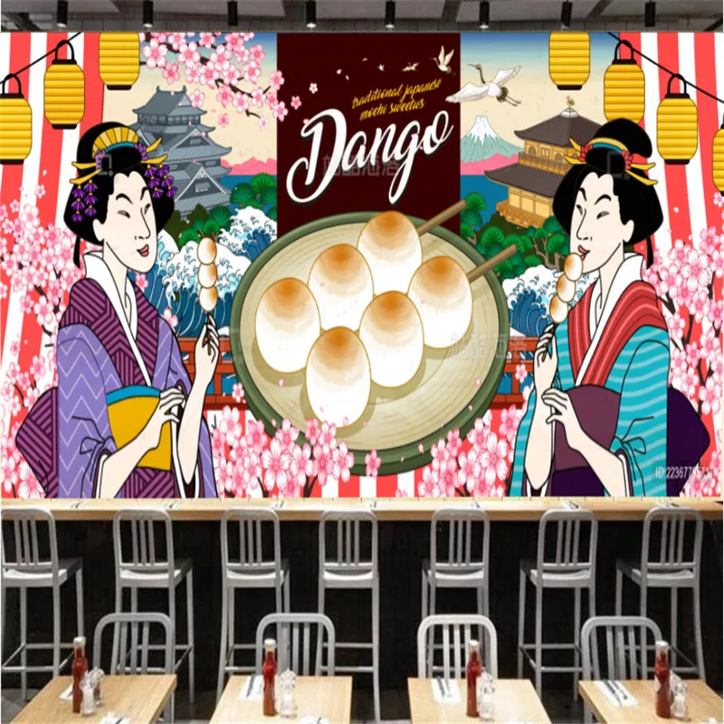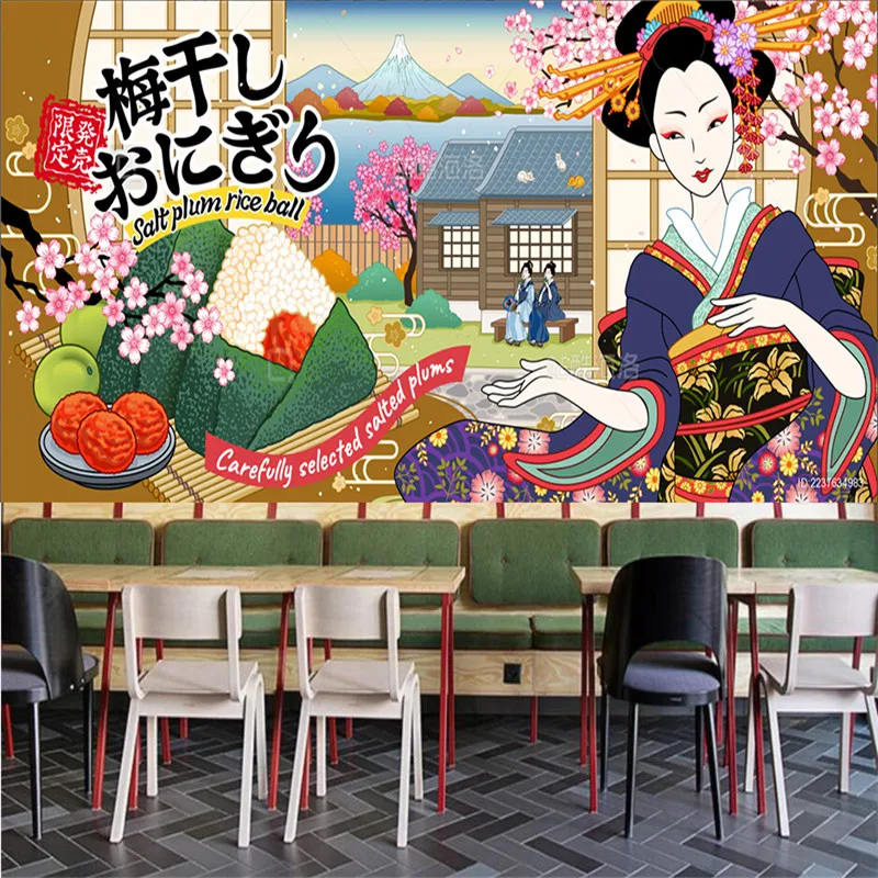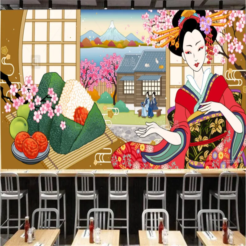 Ручная роспись Япония Знаменитые Достопримечательности настенная бумага 3D кимоно красота японская кухня суши Ресторан промышленный Декор настенная бумага