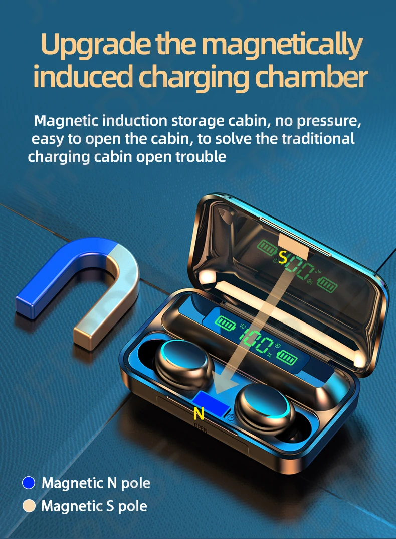 TWS-наушники F9 с зарядным футляром, Bluetooth 5,0, 2200 мА ч