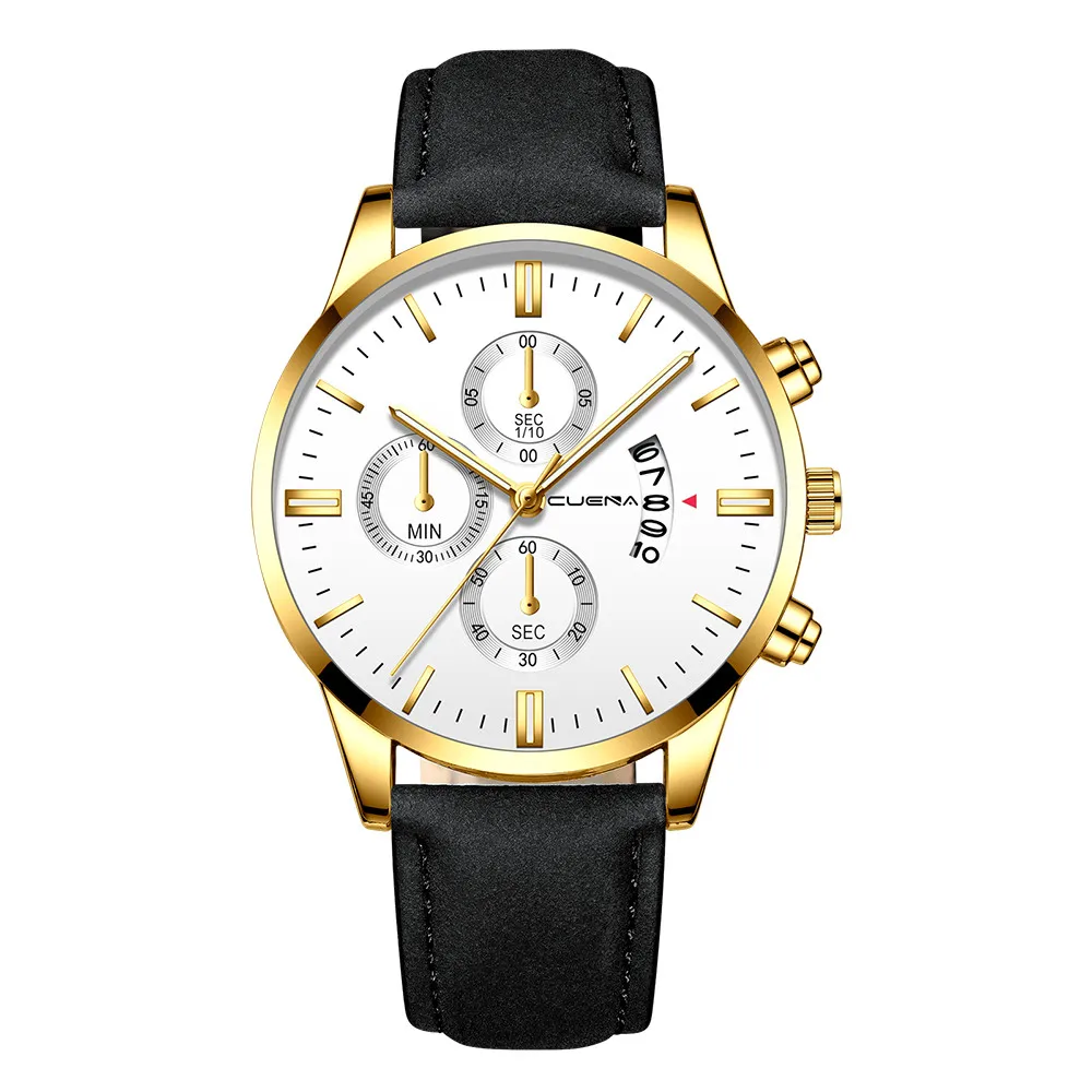 Мужские модные спортивные часы CUENA, кожаный ремешок, Кварцевые ан...