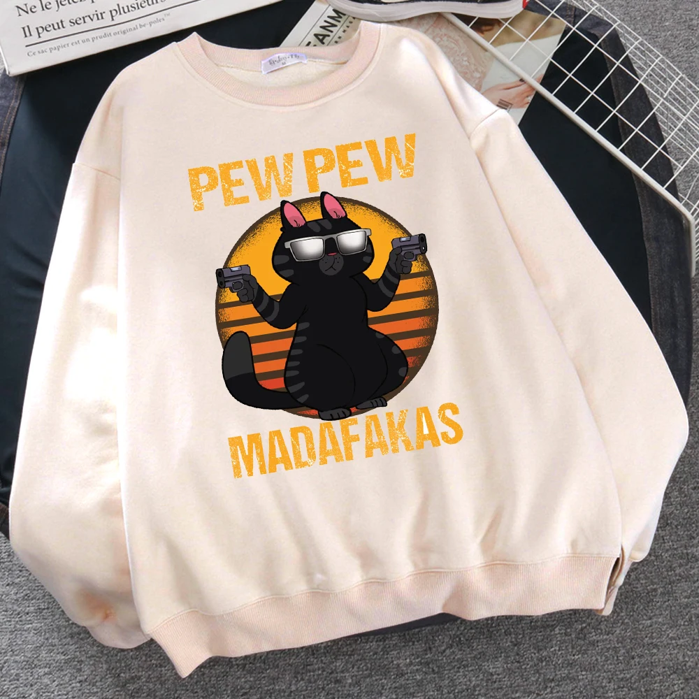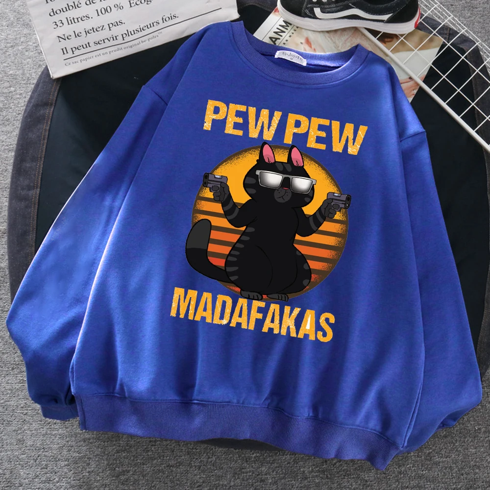 Толстовка с капюшоном с надписью Double Gun Cat Pew Madafakas, мультяшная уличная одежда для мужчин, модные повседневные спортивные костюмы, удобная флисовая толстовка