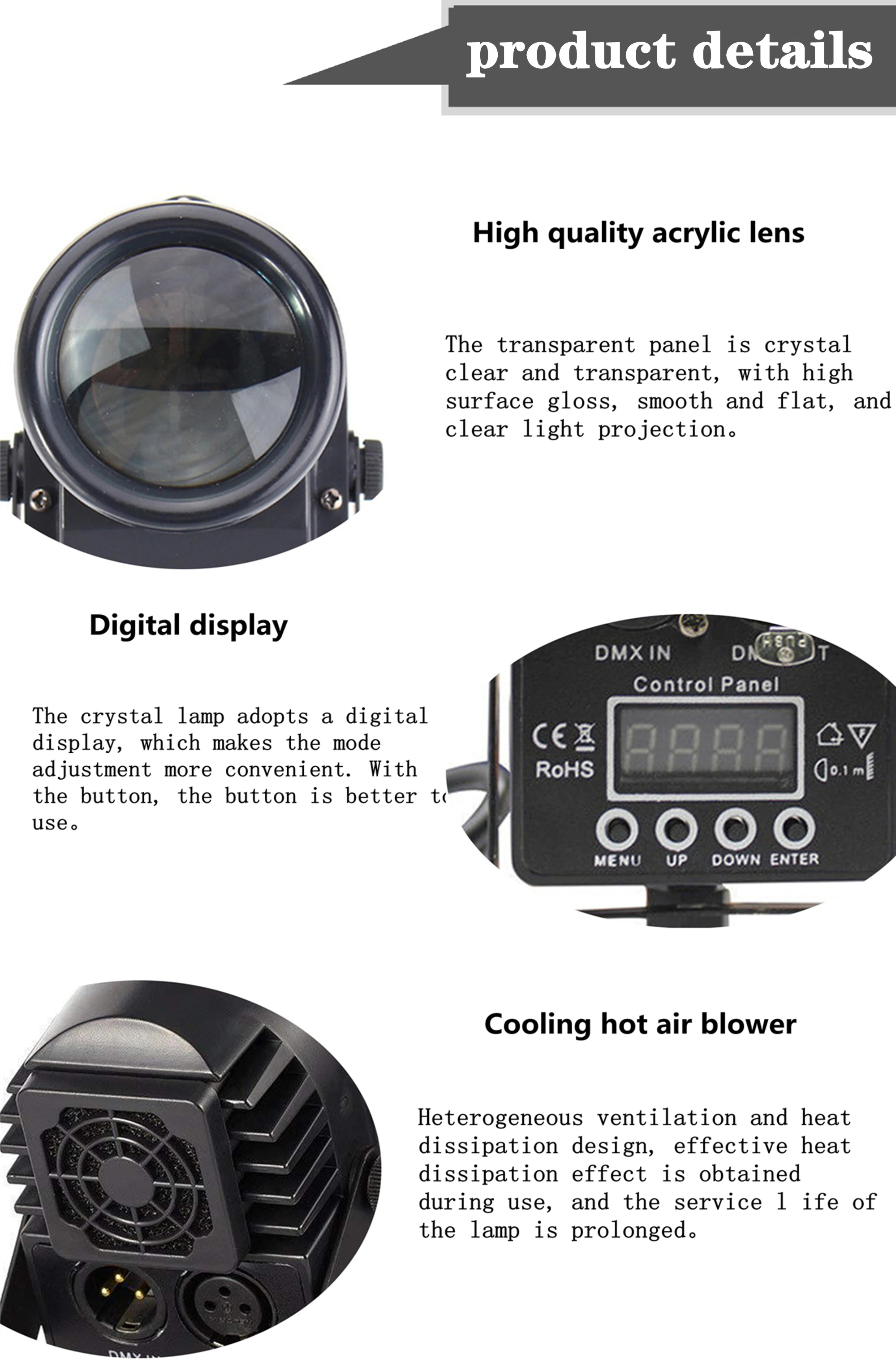 Model:DMX 512, Master/Slave, Stand alone, Auto run, Sound activate