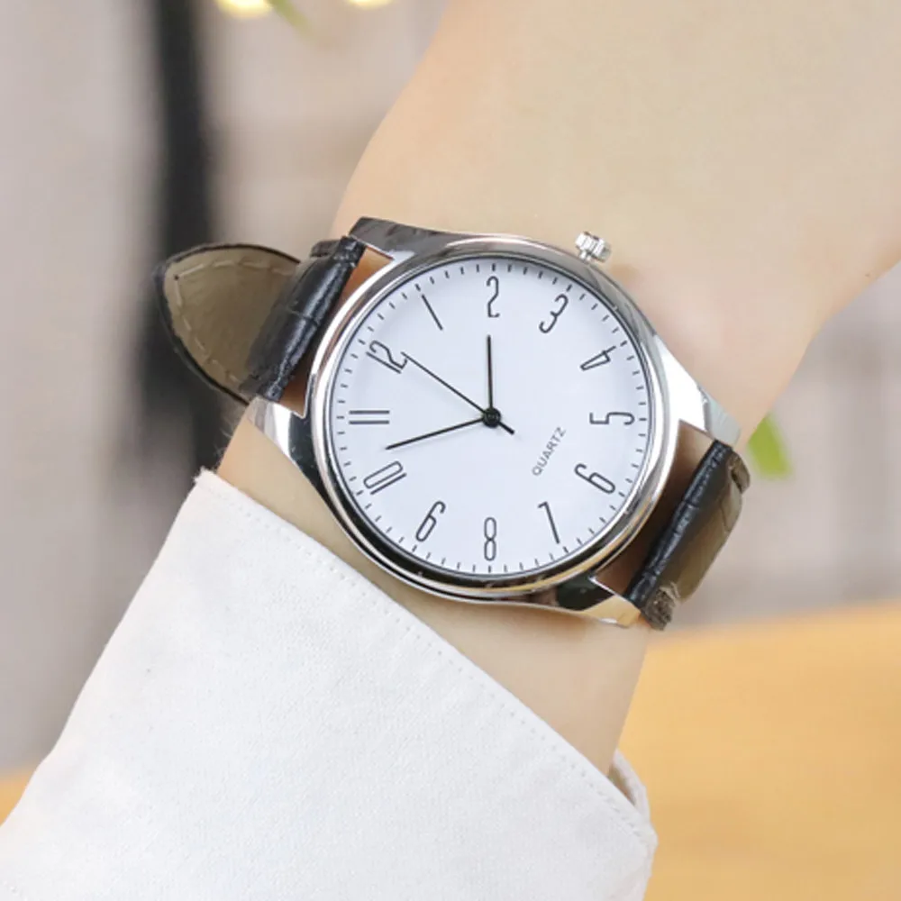 Мужские Простые деловые модные кожаные кварцевые наручные часы
