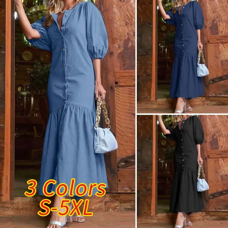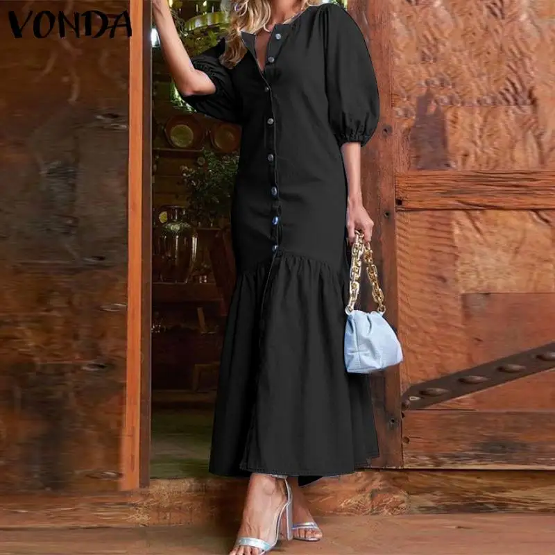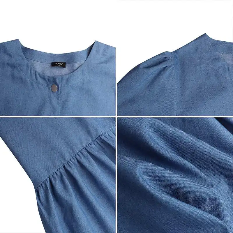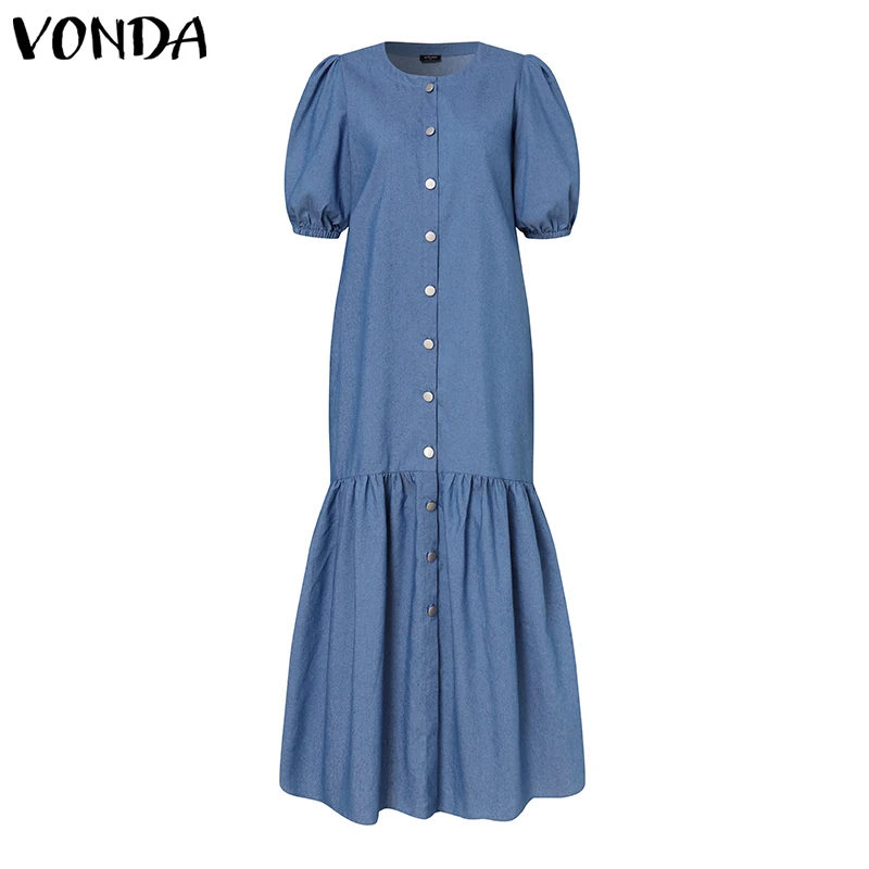 Женское платье из джинсовой ткани 2021 VONDA, винтажное длинное платье с рукавом до локтя, праздничный сарафан, повседневные платья, женское платье большого размера