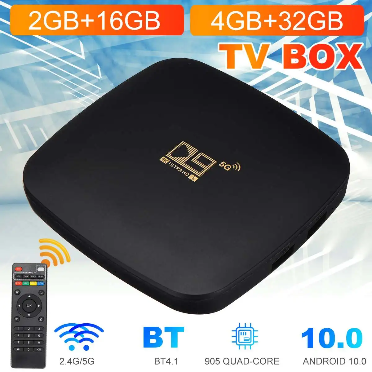 ТВ-приставка D9, 4 + 32 ГБ, 2 + 16 ГБ, Android 2,4, 5 ГГц, Wi-Fi 905, 4K, bluetooth