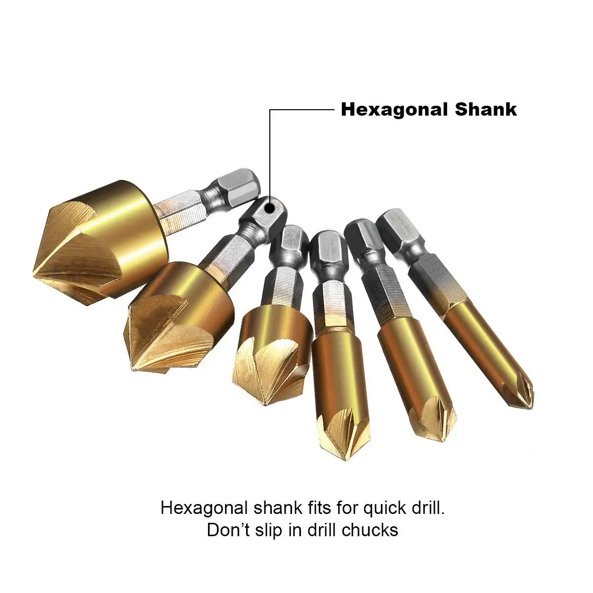 Набор зенкеров для дрели, 5 бороздок, 14 дюйма, с шестигранным хвос...