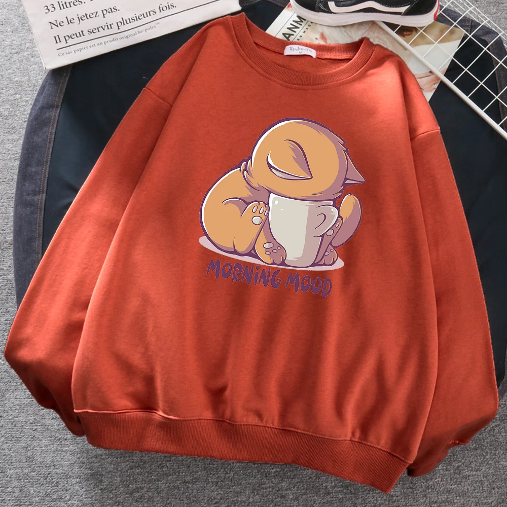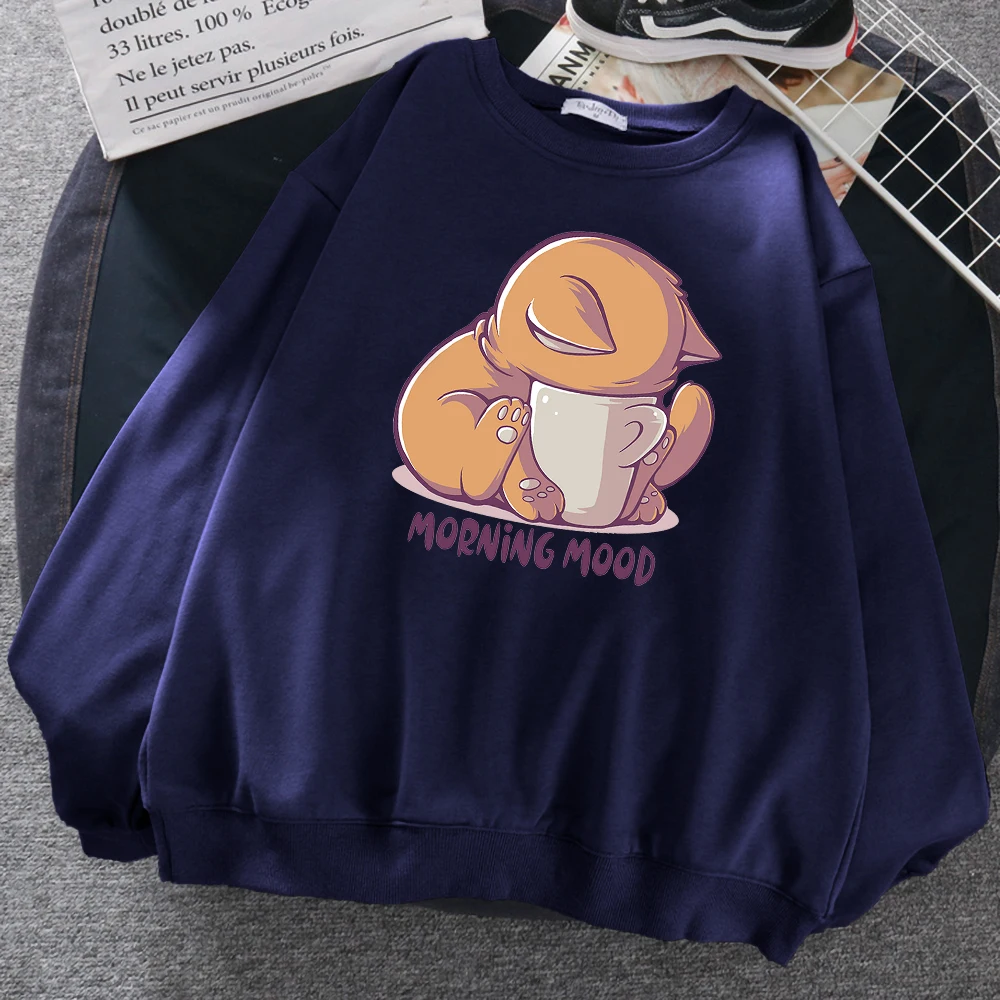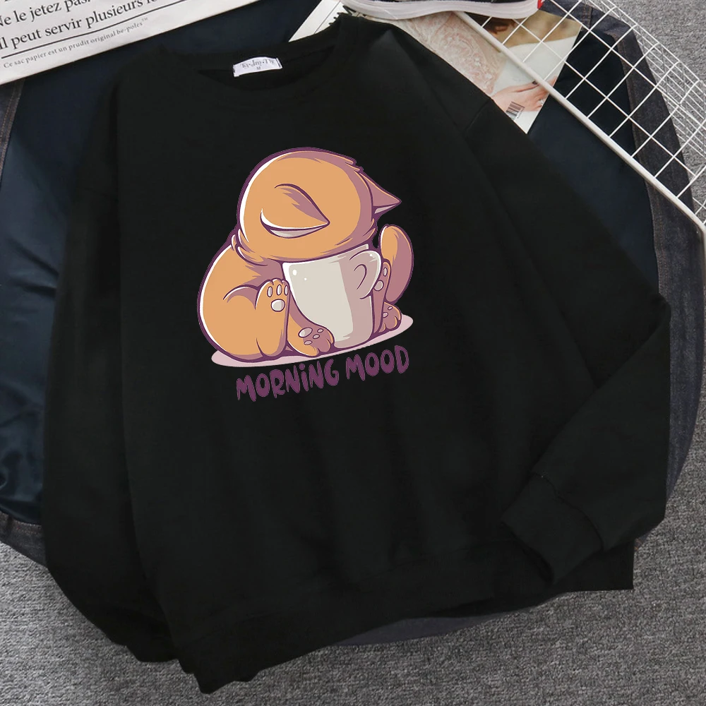 Костюм спортивный мужской с милым котом и надписью Morning Mood, Повседневная Удобная худи в стиле хип-хоп, одежда в стиле Харадзюку для осени