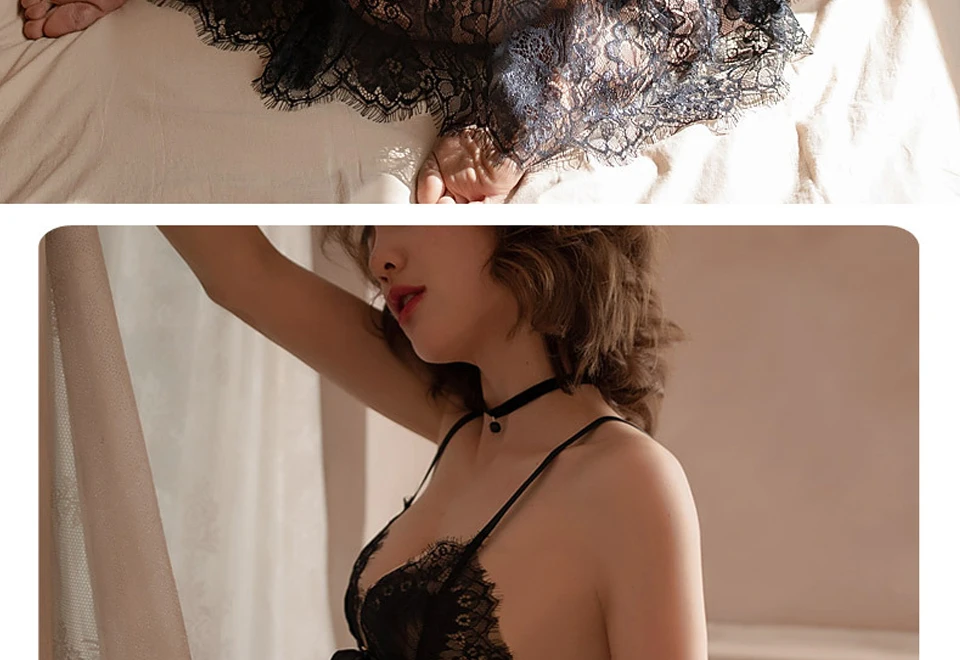 Пикантные кружевные ночные рубашки с глубоким V-образным вырезом, женская пижама, кружевное мини-платье для сна с бантом и разрезом, женская ночная рубашка в стиле пэчворк, Ночная сорочка с открытой спиной
