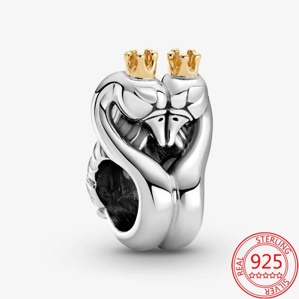 Шарм-змея из серебра 925 пробы, 14 карат, двухцветный, с лебедем и сердцем
