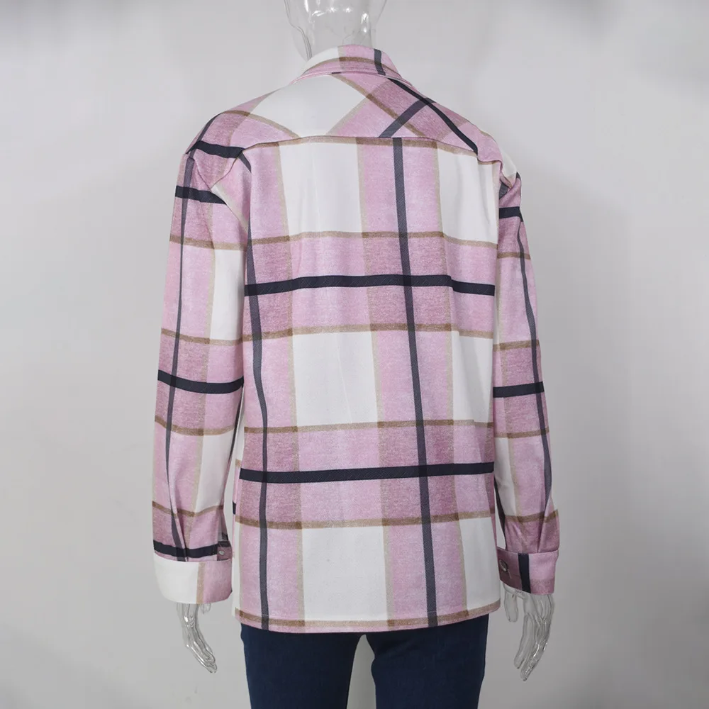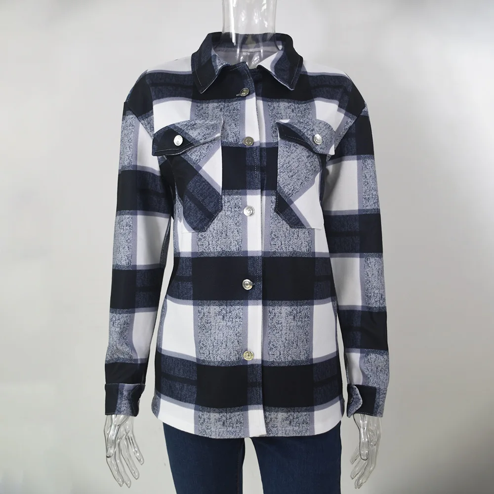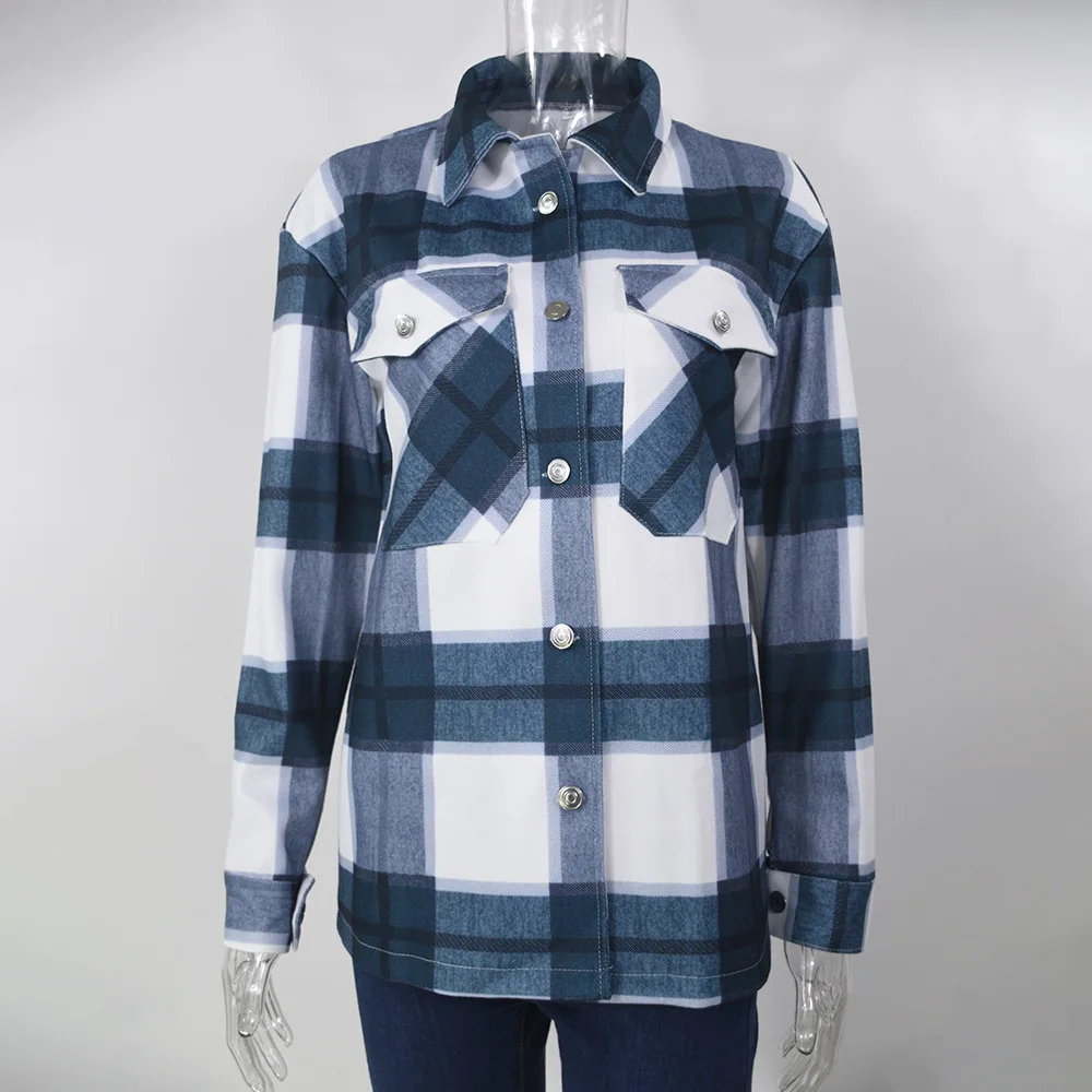 Женская рубашка в клетку, с отложным воротником, на пуговицах