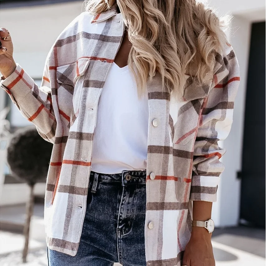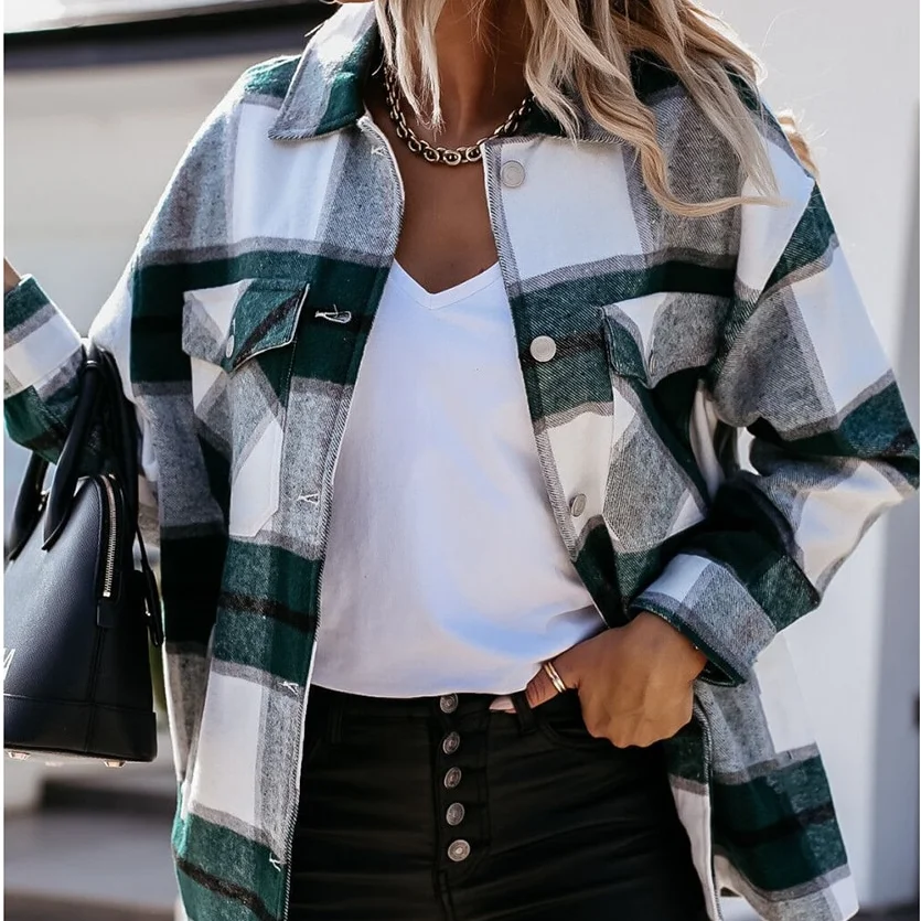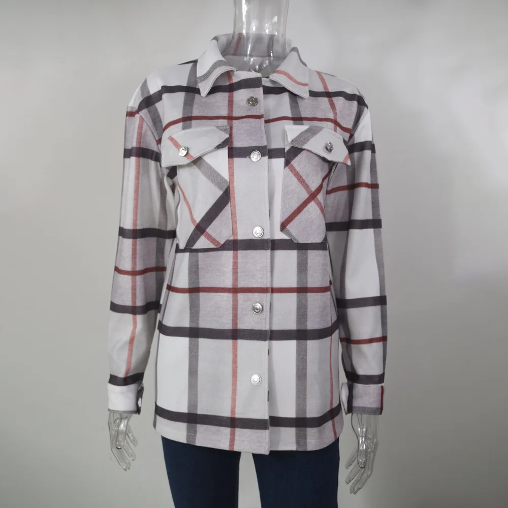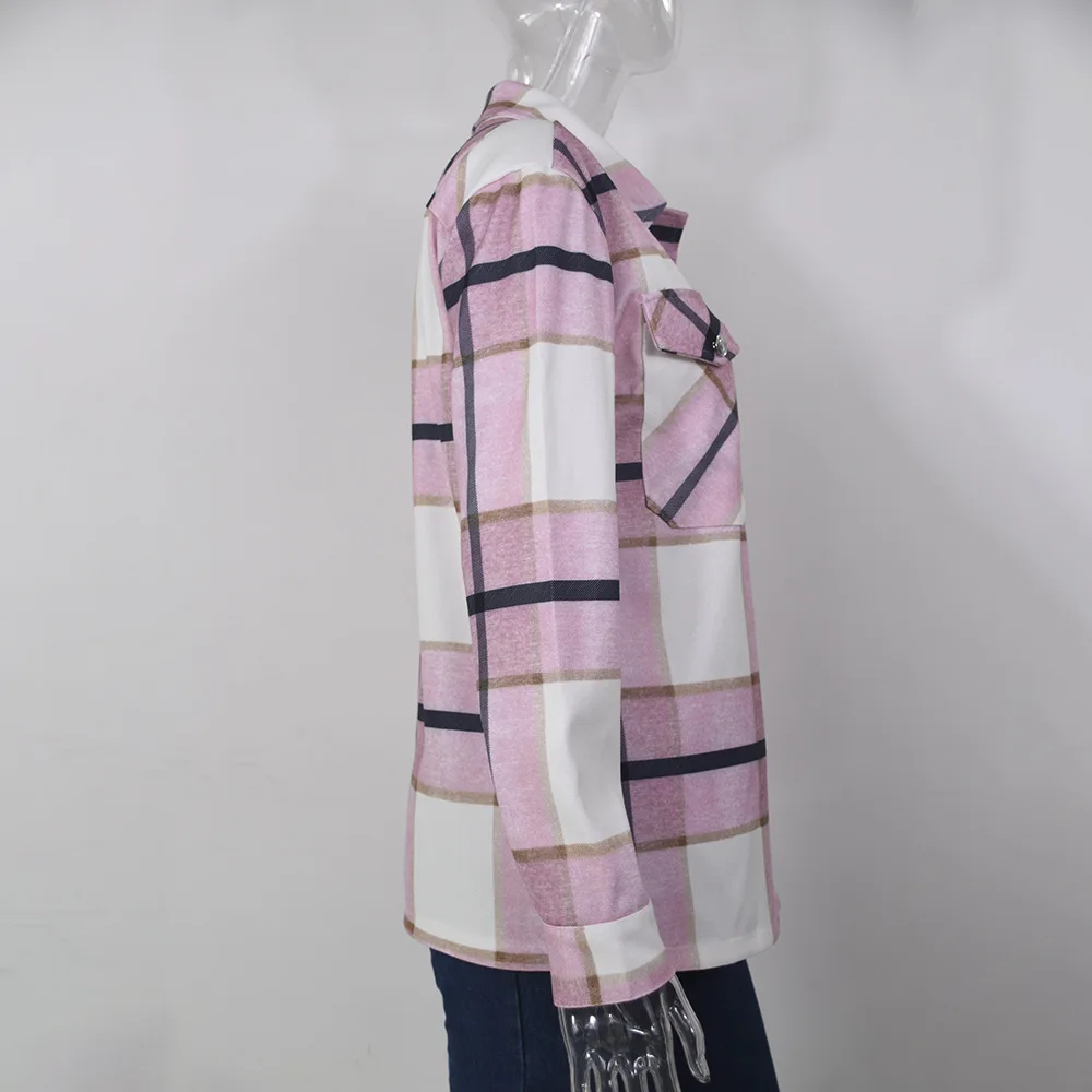 Женская рубашка в клетку, с отложным воротником, на пуговицах