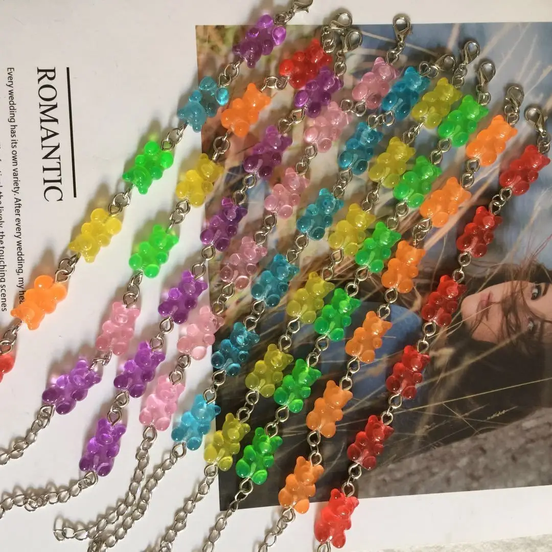 2021 Симпатичные радужные конфеты, яркие конфеты, яркие конфеты, Женский медведь ручной работы, в стиле хип-хоп, желеобразные цвета, подарок для девушки