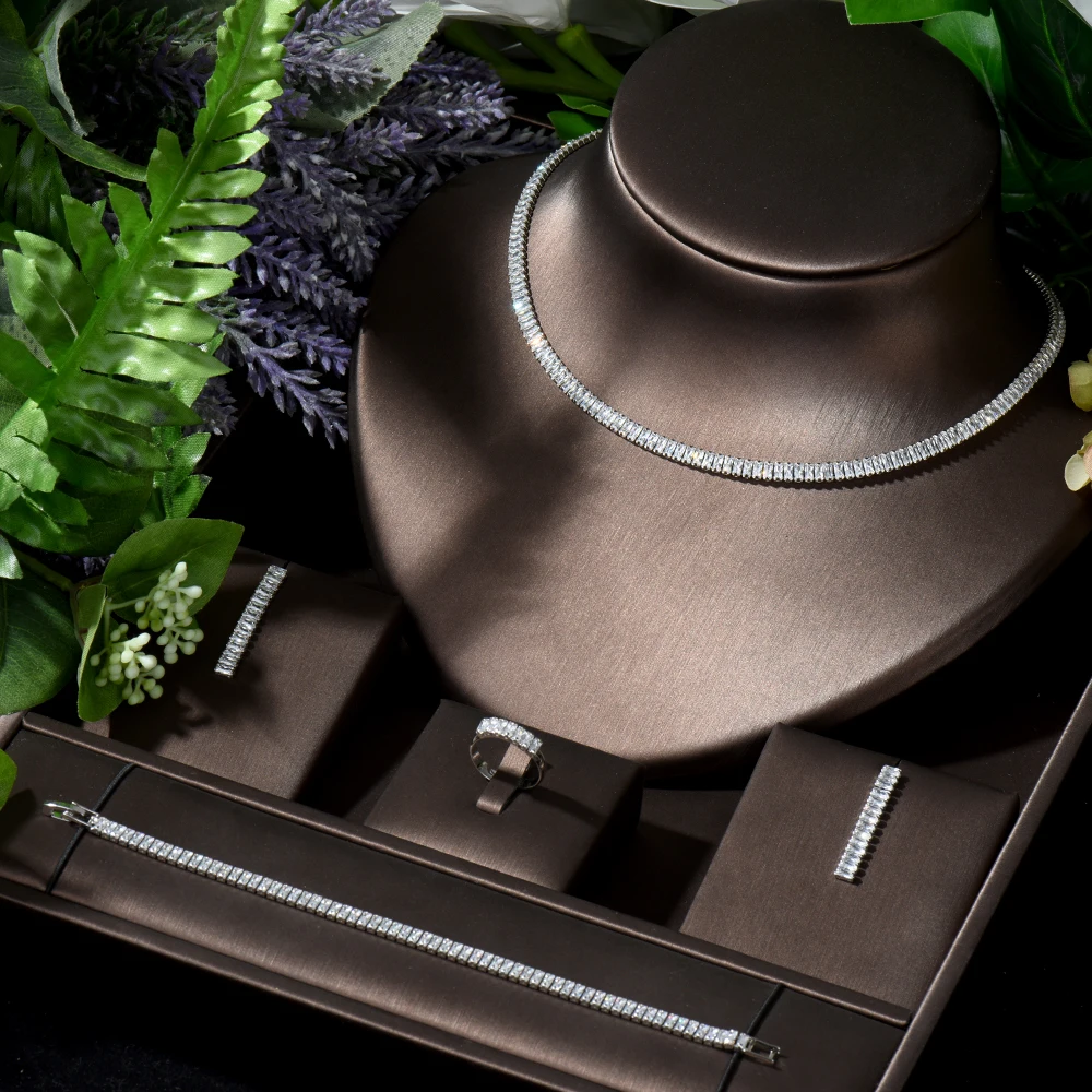 HIBRIDE роскошные 4 шт ожерелье и серьги набор багет циркония чокер дизайн африканские ювелирные изделия Нигерия Свадебные аксессуары N-400