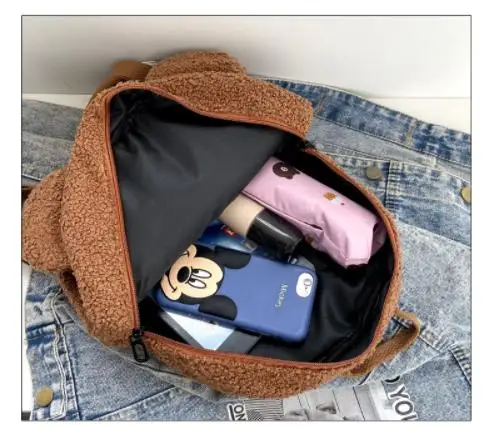 Детский мини-рюкзак для мальчиков и девочек, школьный рюкзак из флиса с милыми медвежьими ушками, сумка для книг