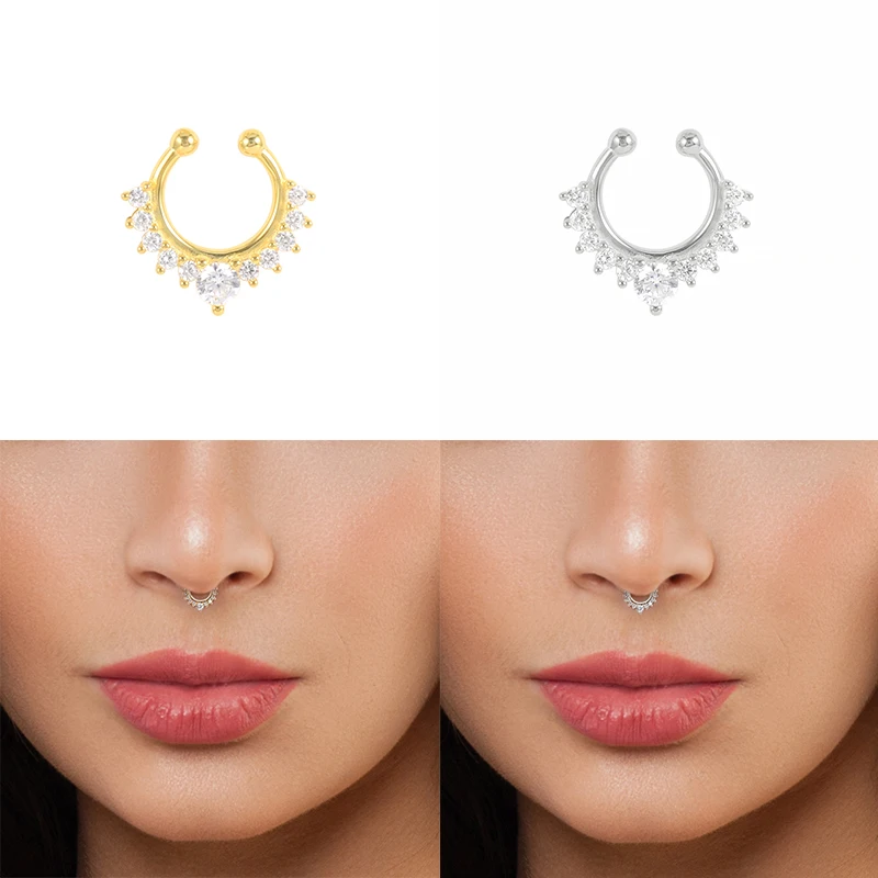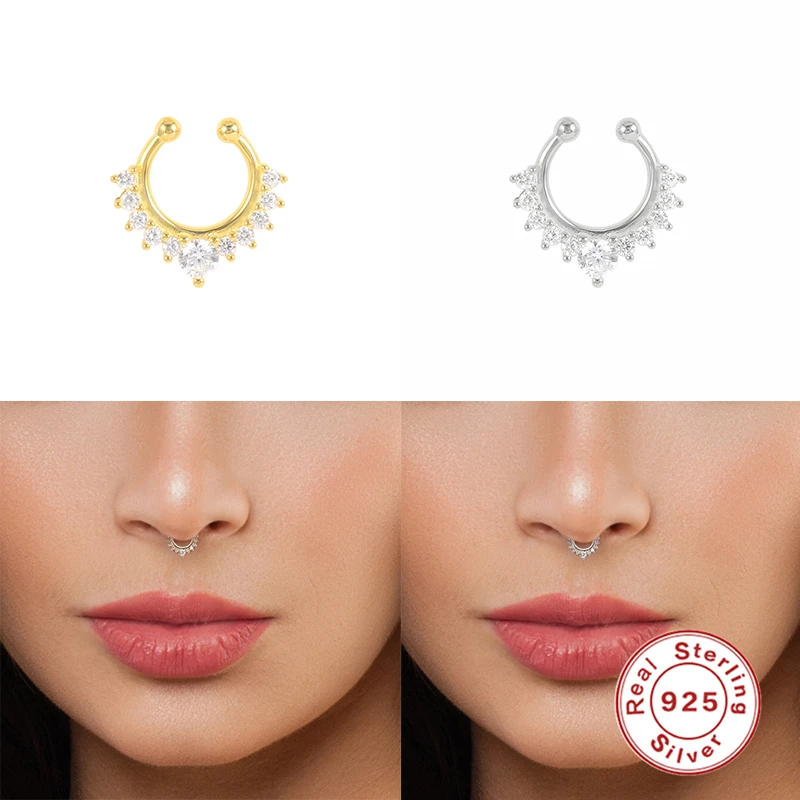 Simply Cartilage Puncture Earrings Nose Ring For Women 925 Silver Crystals Earrings Zircon Round Nose Ring Piercing Body Jewelry