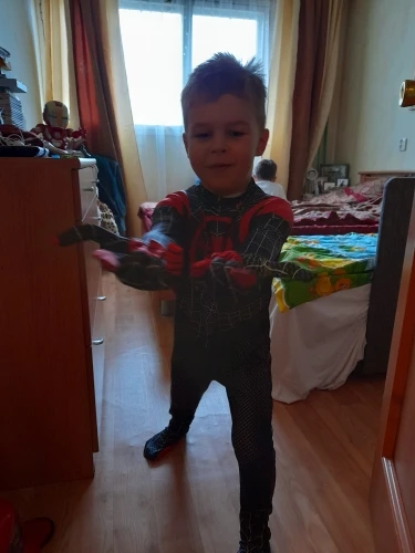 Маска плохо сделана, глаза остаются перед ребенком и очень короткие. Костюм идеально подходит
